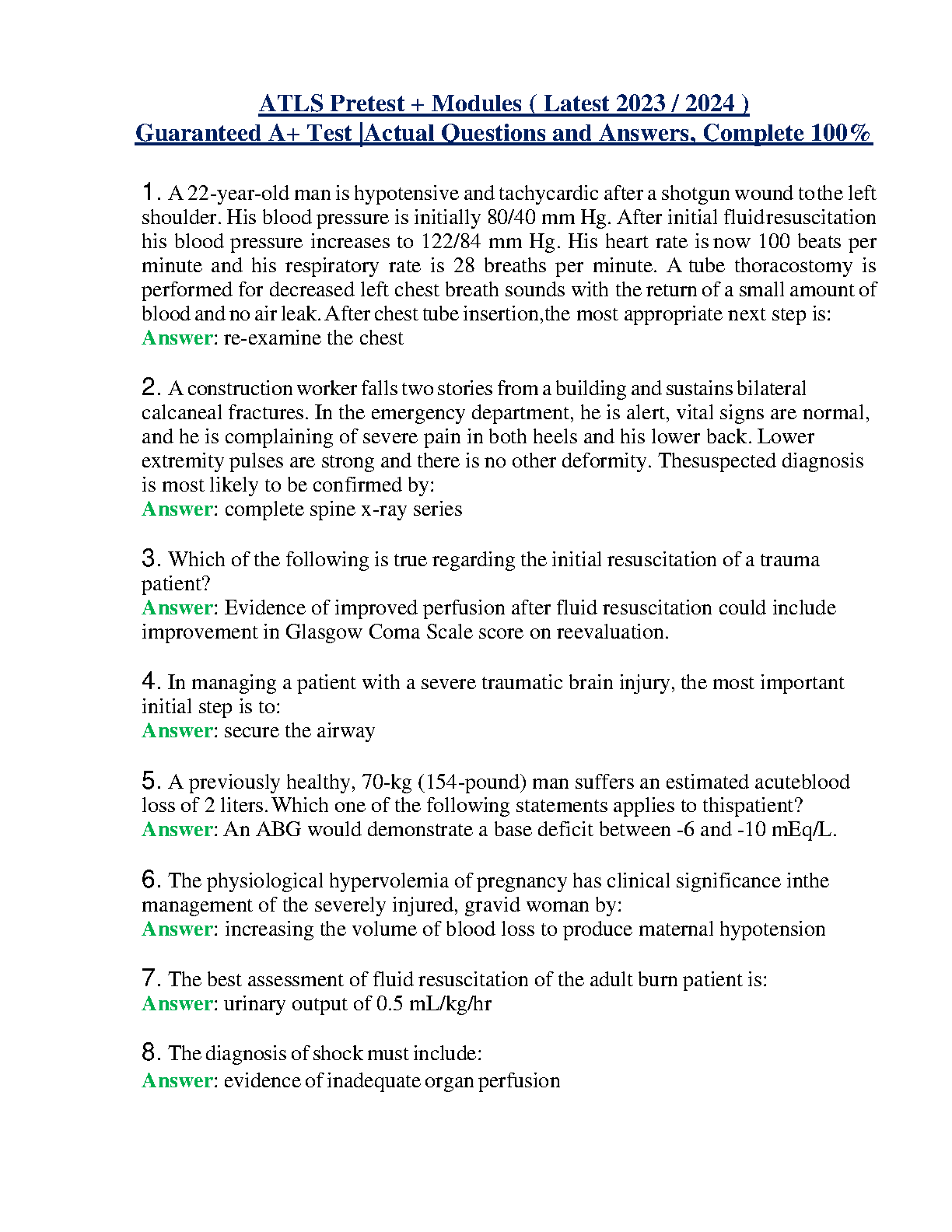 ATLS Pretest + Modules (Latest 2023/2024) Guaranteed A+ Test [Actual Questions and Answers, Complete 100%]