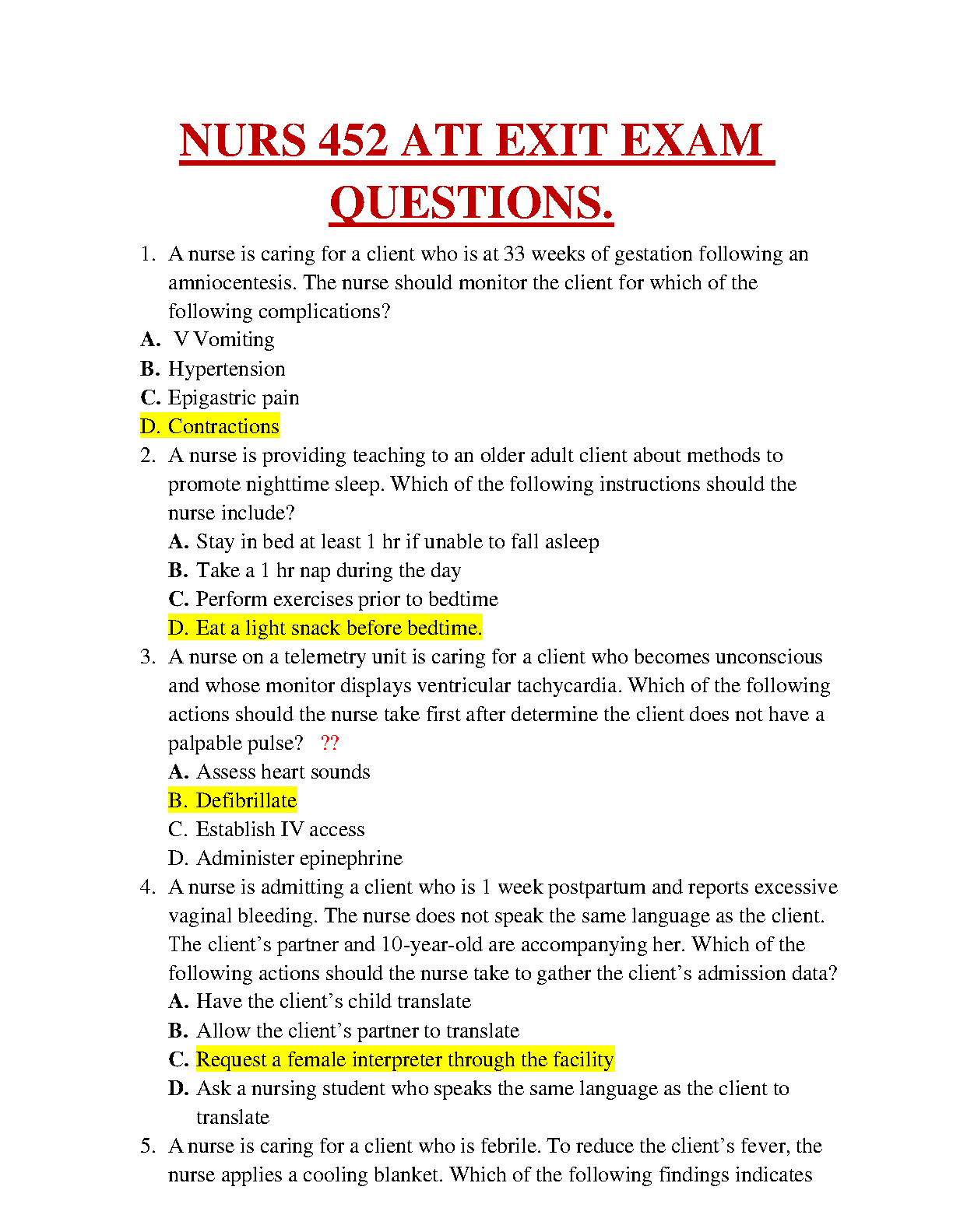 Nurs 452 ATI Exit Exam Questions - Latest Edition 2024/2025 - Pass Your Exam on the First Attempt - Avoid Resits