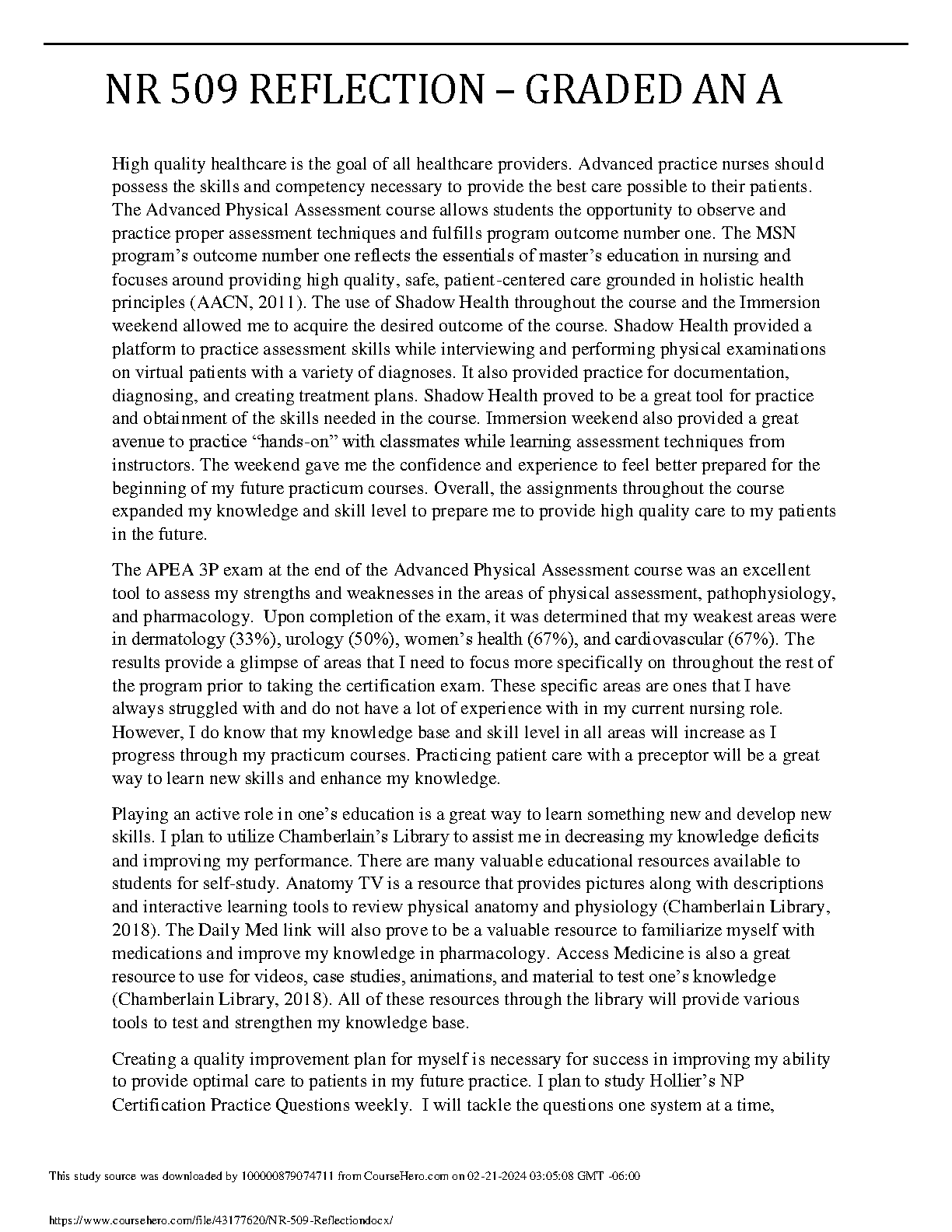 NR 509 Reflection - Graded an A by [Insert Author Name] - 2024/2025 Edition - First Time Pass Guaranteed