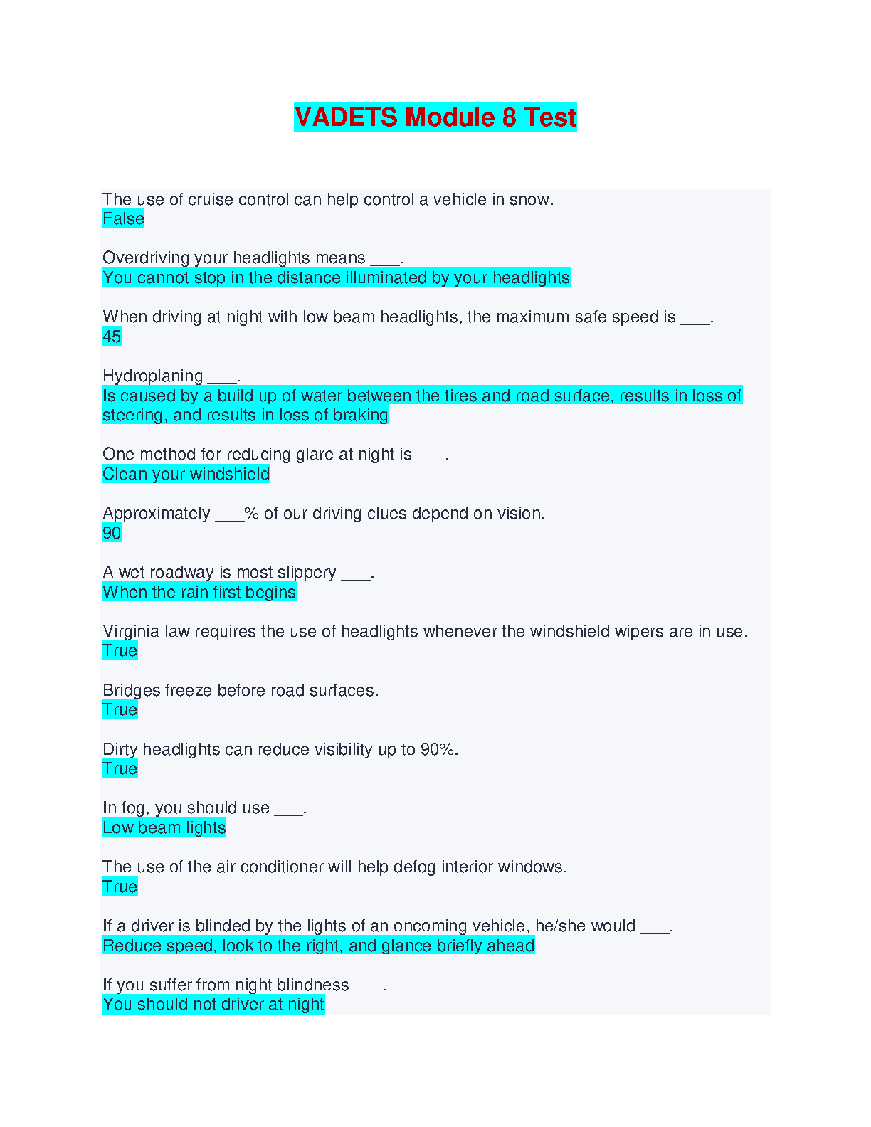 VADETS Module 8 Test: Master Driving Safety in 2024/2025