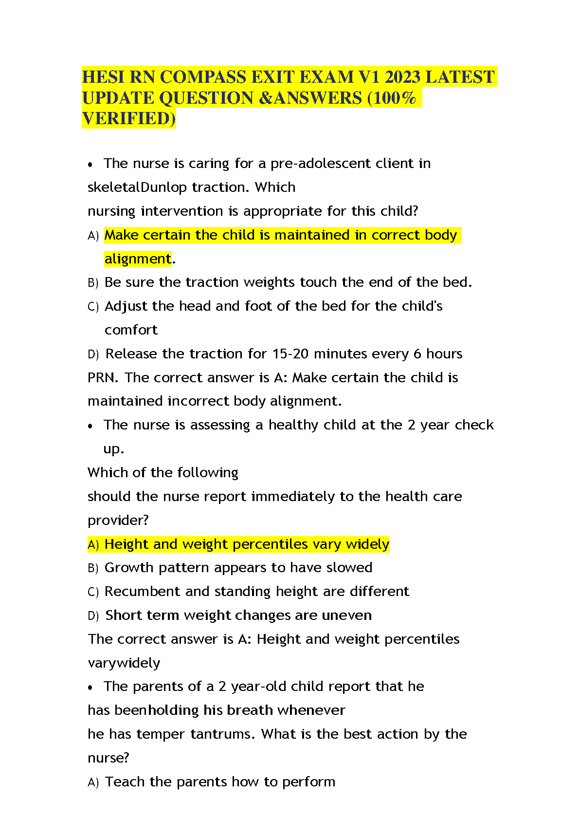 Ace your HESI RN Compass Exit Exam with this comprehensive study guide, featuring the latest update question and answers verified for accuracy. This resource will help you gain the knowledge and confidence to pass your exam on the first try, avoiding any resits.
