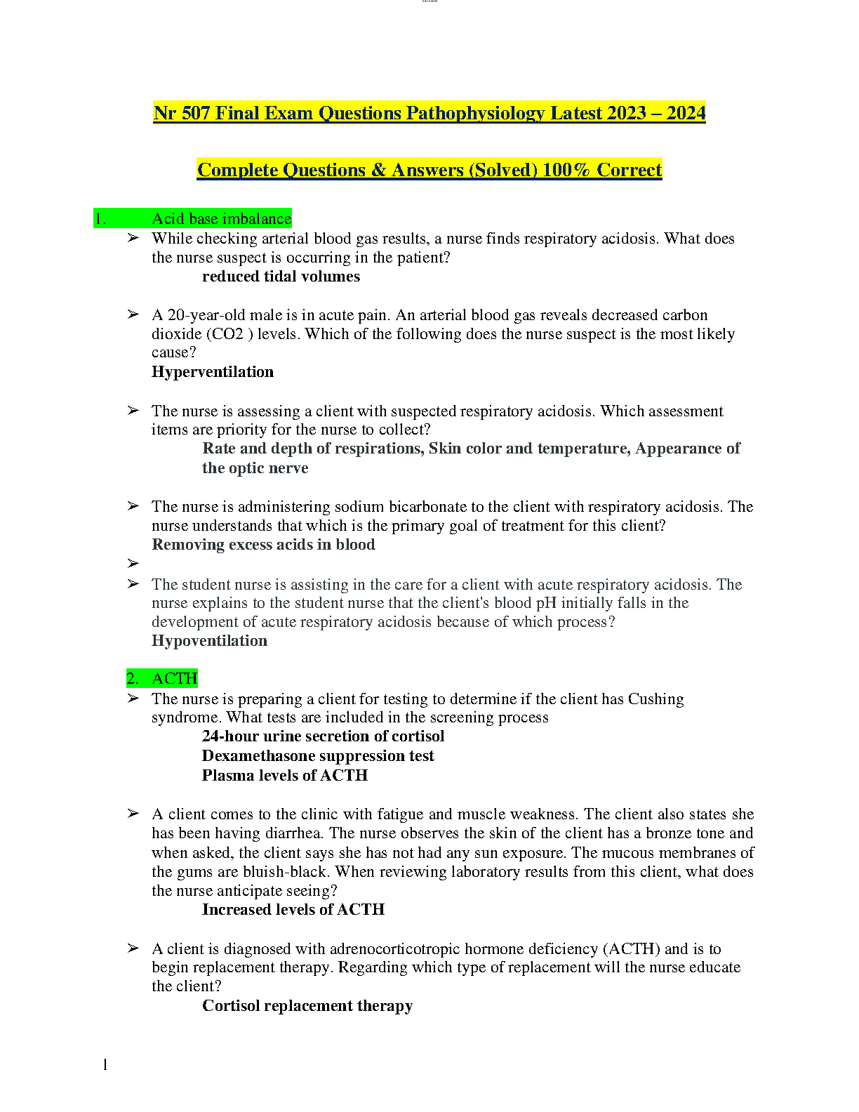Pathophysiology Final Exam Questions & Answers (Solved) 100% Correct - Latest Edition 2023-2024 - by Author Name