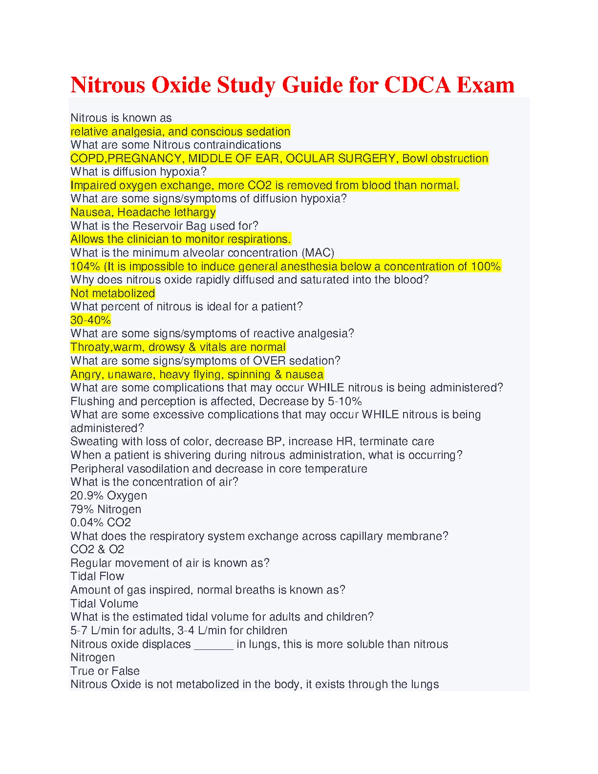 Nitrous Oxide Study Guide for CDCA Exam WITH CORRECT ANSWERS 2023. DOWNLOAD on www.hackedexams.com INSTANTLY.