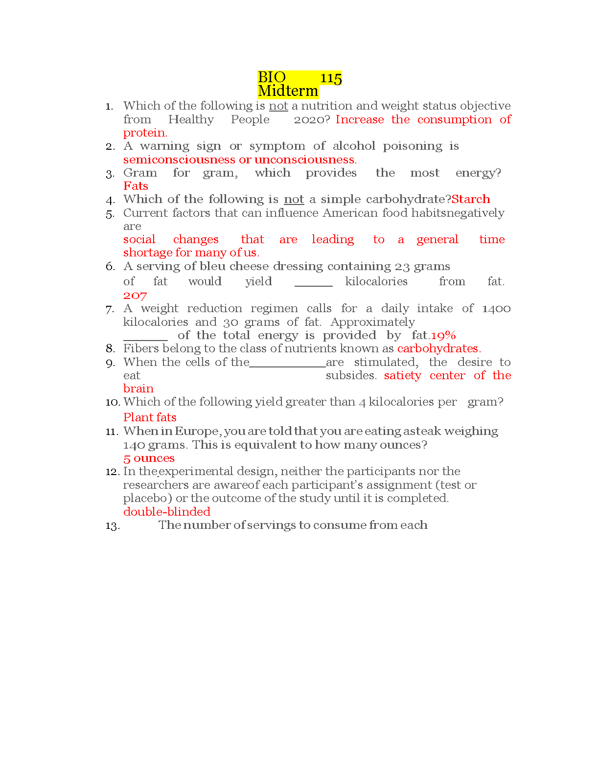 Get ahead of the curve and ace your BIO Midterm 115 exam with our comprehensive study guide. Packed with clear explanations and practice questions, this resource will help you grasp the concepts and improve your understanding of the subject matter. Don't let exam anxiety get in the way of success - prepare with confidence and achieve your academic goals!