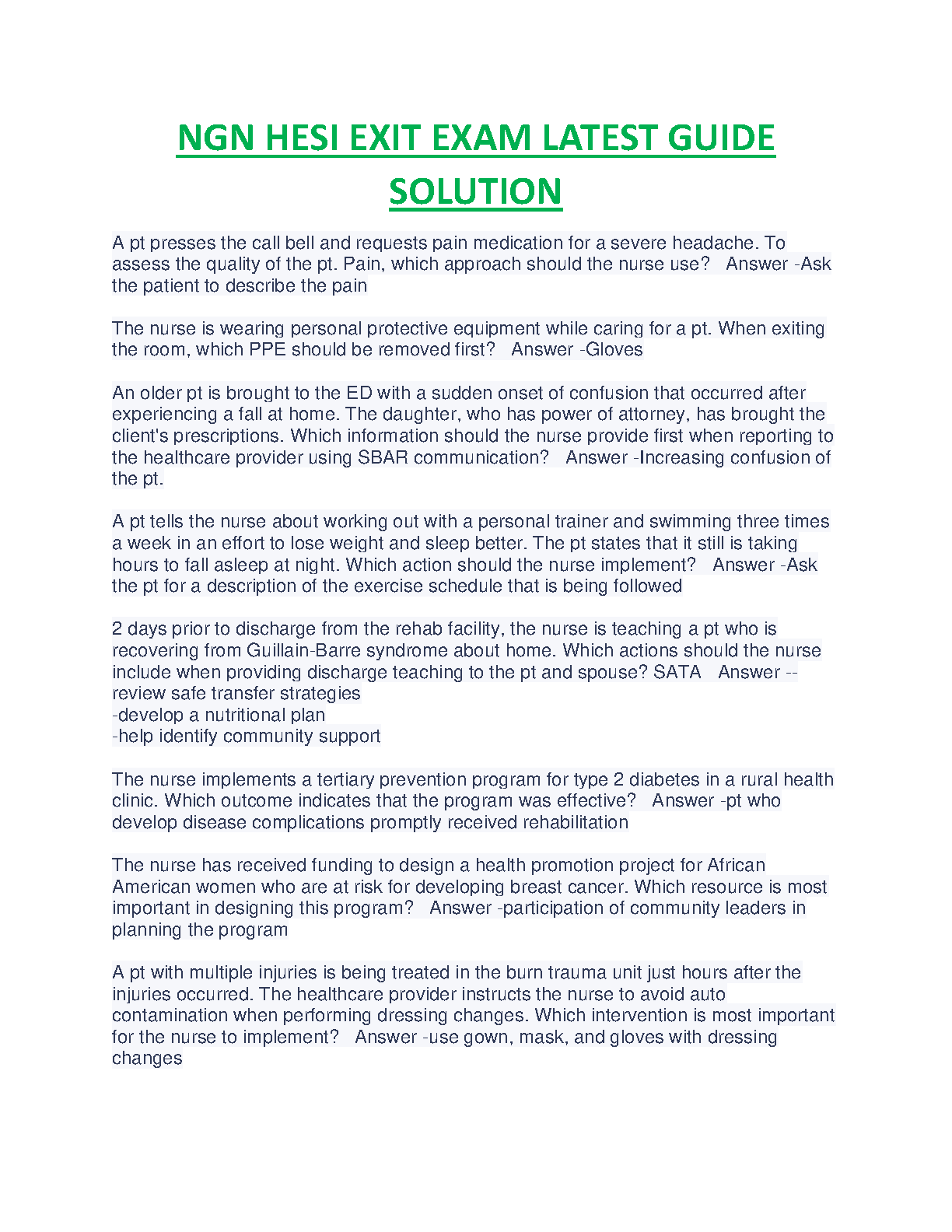 NGN HESI Exit Exam Latest Guide Solution for 2024/2025 - Ace Your Exam on the First Attempt