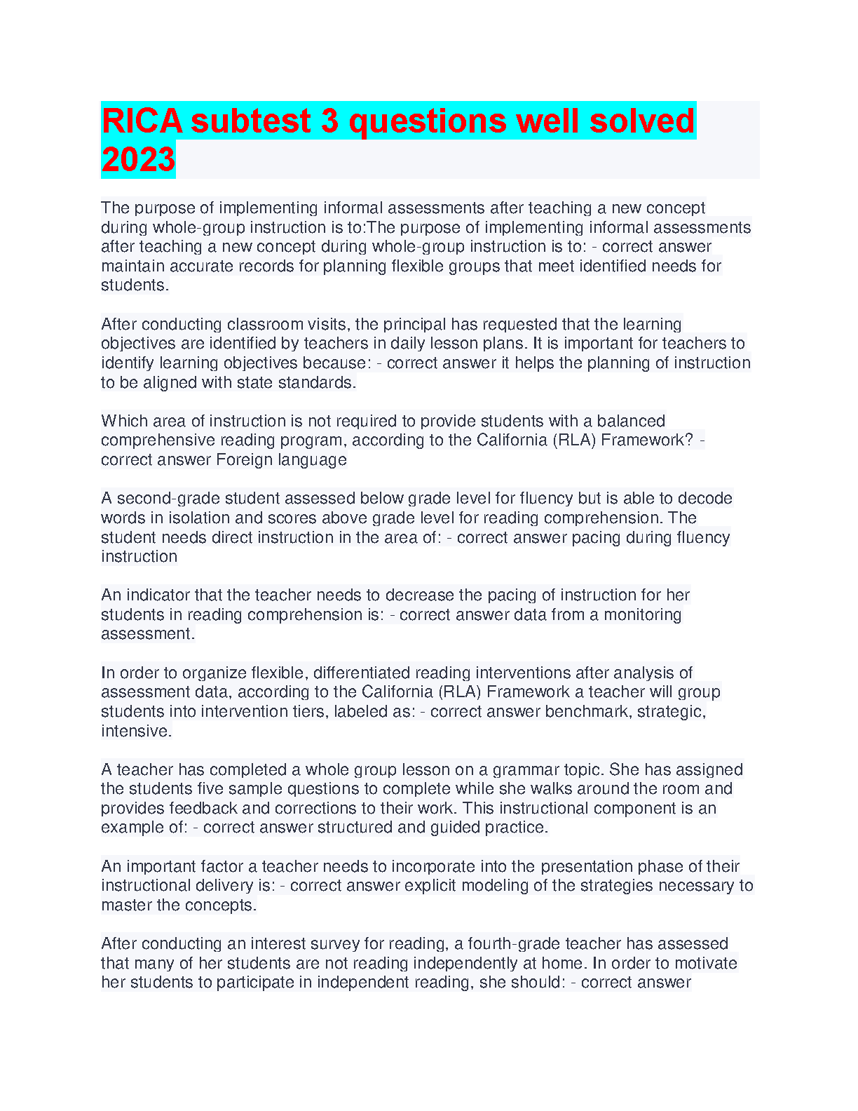 RICA Subtest 3 Questions Well Solved - 2023 Edition - By Authors