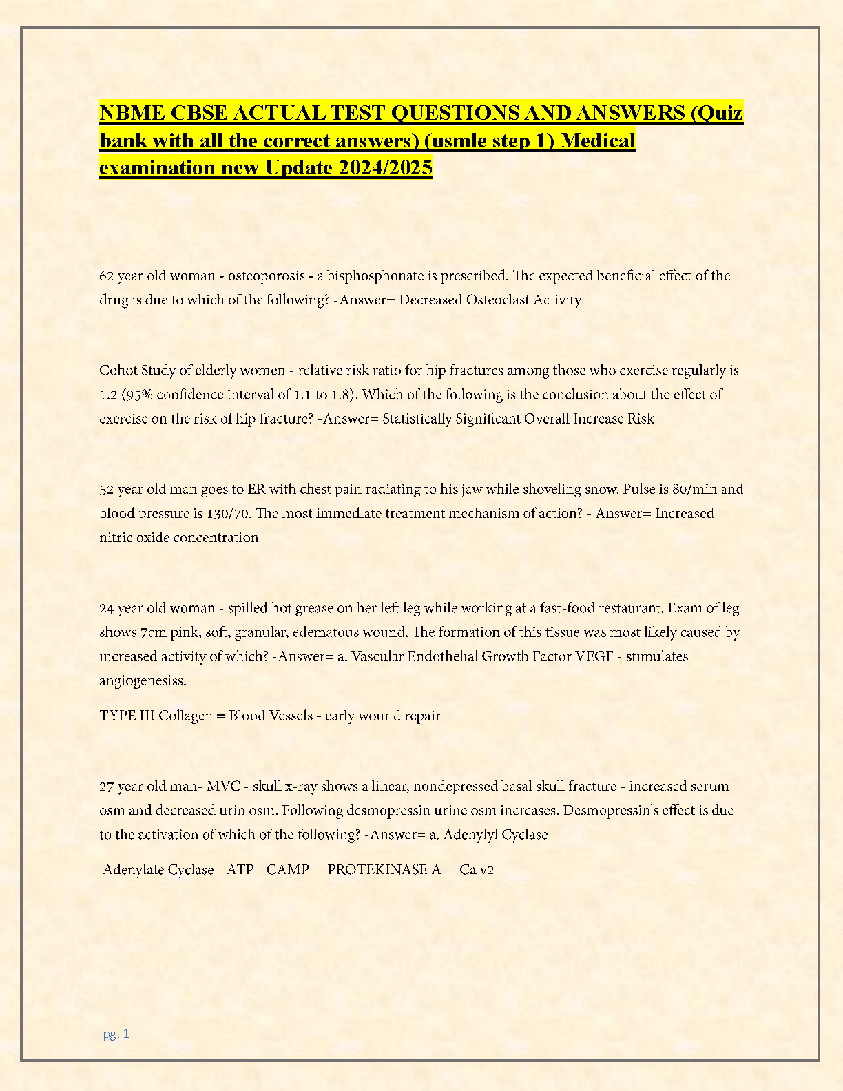 Ace your USMLE Step 1 with our comprehensive NBME CBSE Actual Test Questions and Answers (Quiz Bank) for the 2024/2025 academic year. This resource contains all the correct answers and is updated with the latest medical information. It is designed to help you confidently master the exam content and achieve success on your first attempt, avoiding the stress and expense of resits.