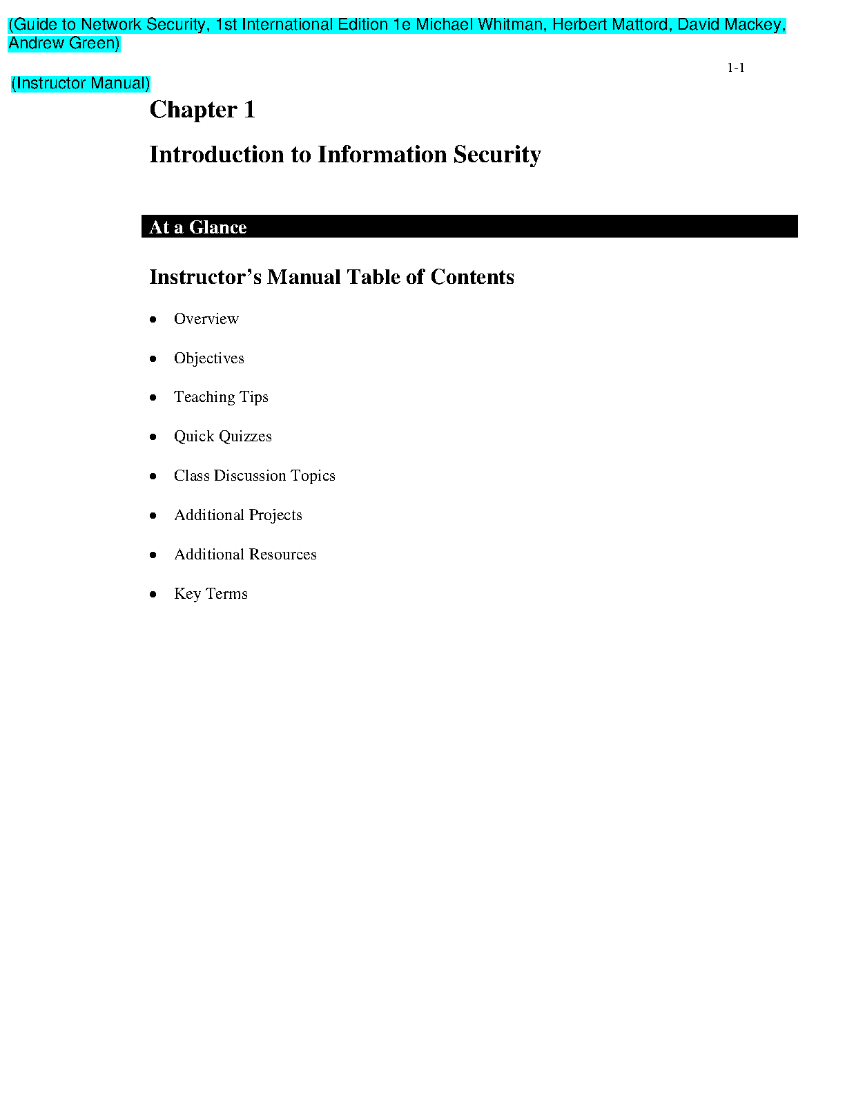 Guide to Network Security 1st International Edition by Michael Whitman, Herbert Mattord, David Mackey - Instructor Manual