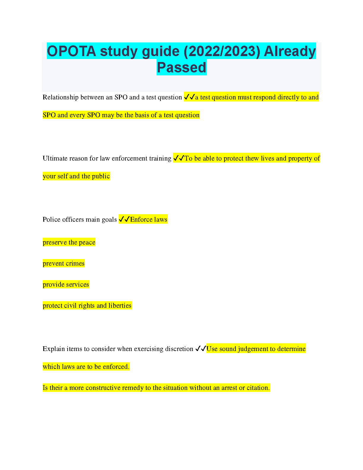 Get ready to ace your OPOTA exam with this comprehensive study guide covering the latest concepts and key principles of law enforcement. Developed by experienced professionals, this guide features detailed explanations, practice questions, and real-world scenarios to ensure your success on your first attempt.