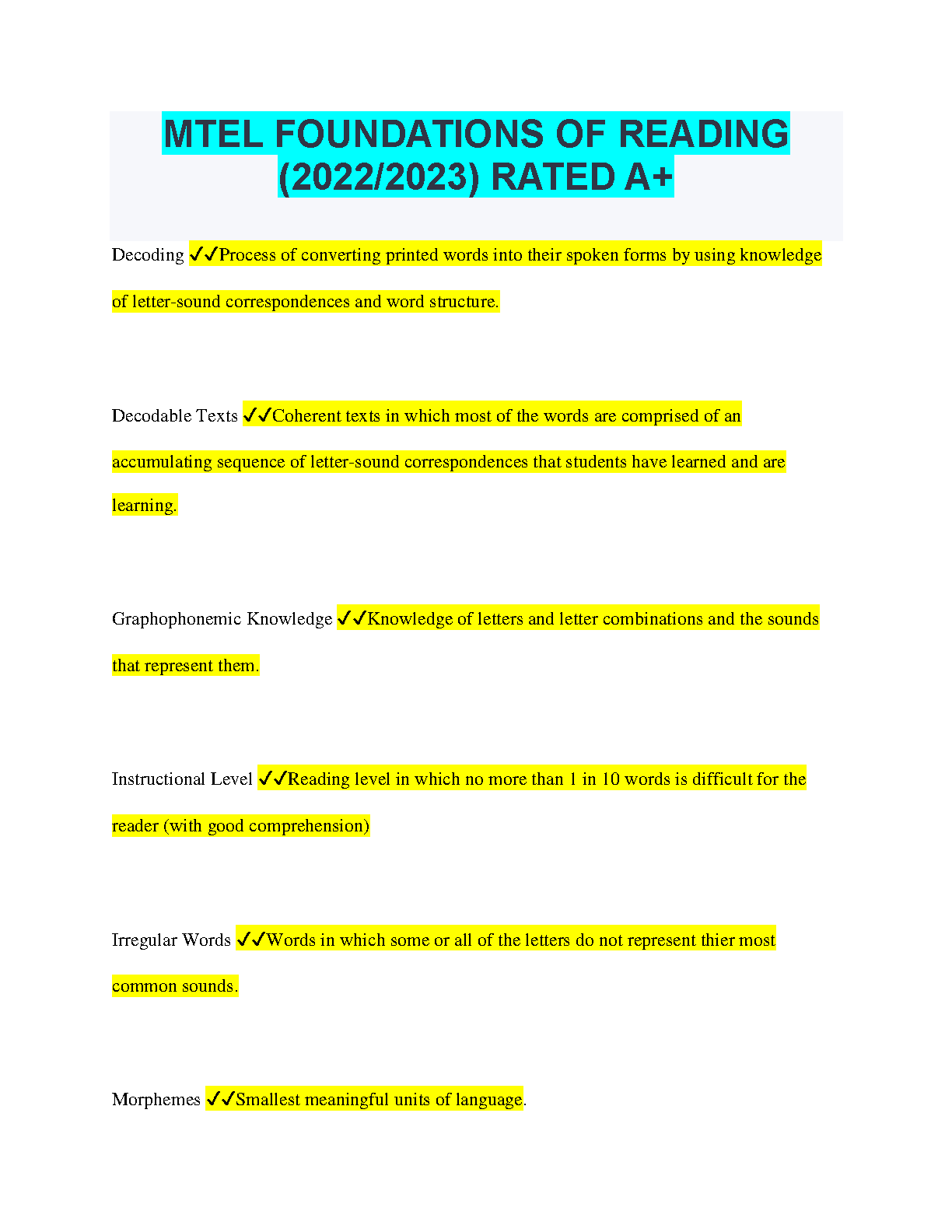Master the MTEL Foundations of Reading exam with this comprehensive study guide covering all the essential topics and concepts. This study guide provides a thorough understanding of decoding, decodable texts, graphophonemic knowledge, instructional level, irregular words, and morphemes. Boost your confidence and achieve a high score, ensuring a smooth path to your teaching career.