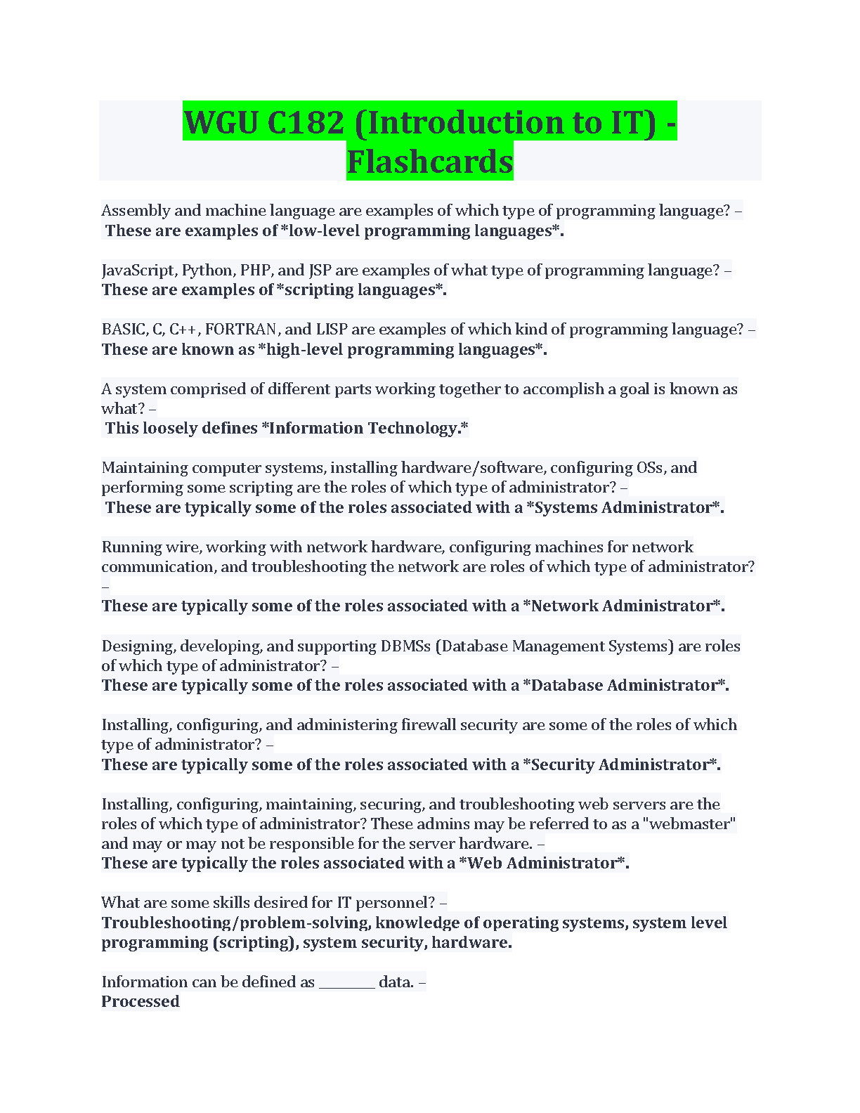 WGU C182 (Introduction to IT) - Flashcards 2023. DOWNLOAD on www.hackedexams.com INSTANTLY.