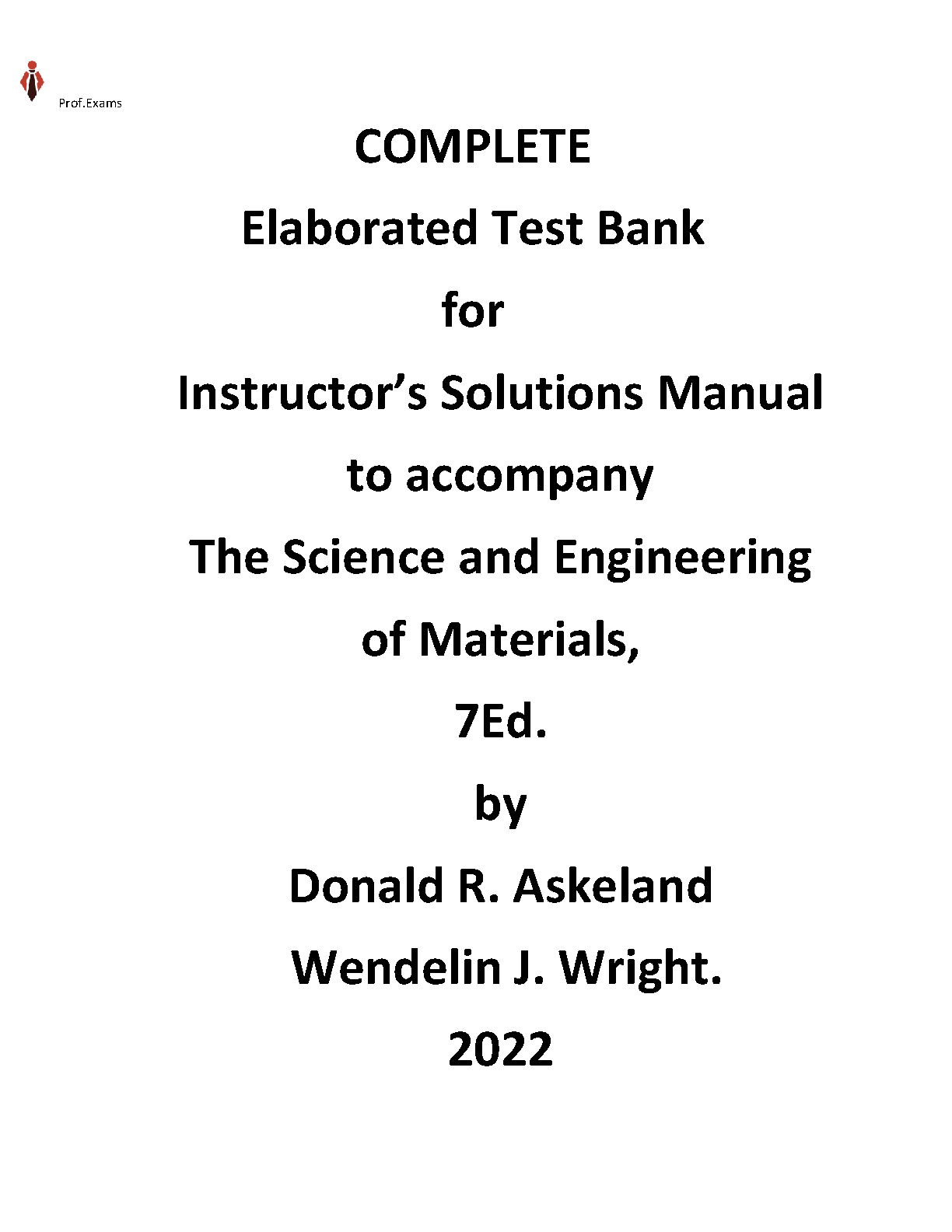 Get ready to ace your exams with this comprehensive Test Bank for The Science and Engineering of Materials: Enhanced Seventh Edition by Donald R. Askeland and Wendelin J. Wright. This valuable resource provides you with a wide range of practice questions that mirror the format and difficulty of the actual exam. Practice makes perfect, and this Test Bank will help you feel confident and prepared on exam day.