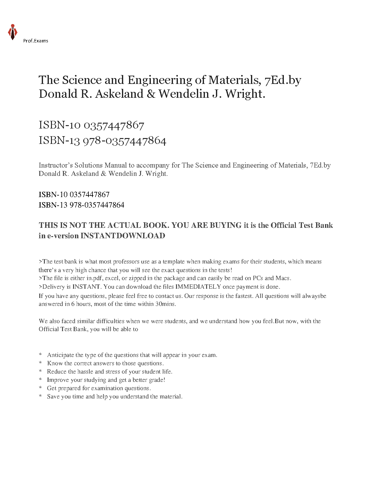 The Science and Engineering of Materials: Enhanced Seventh Edition by Donald R. Askeland and Wendelin J. Wright TEST BANK
