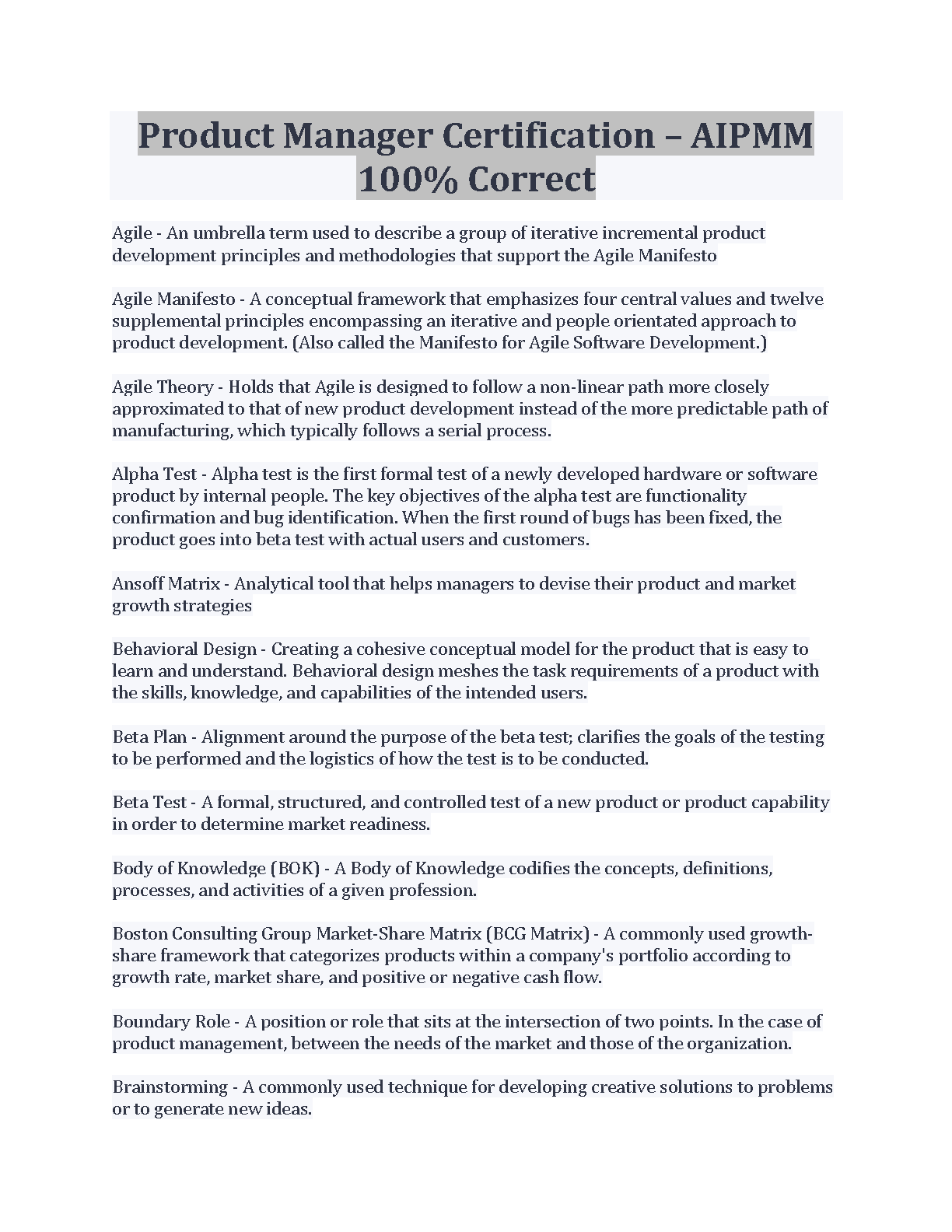 Product Manager Certification - AIPMM 100% Correct: Glossary of Terms and Concepts for Success