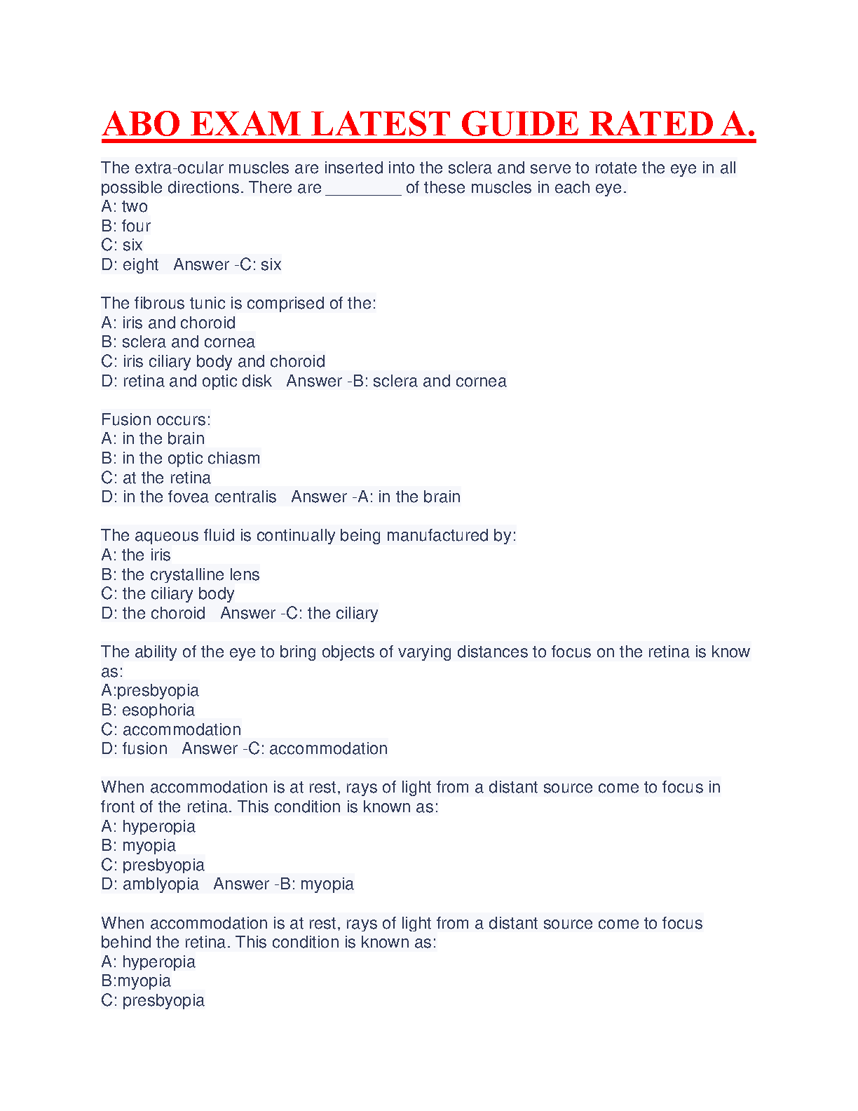 ABO Exam Latest Guide Rated A. - Pass Your Exam With This Comprehensive Guide