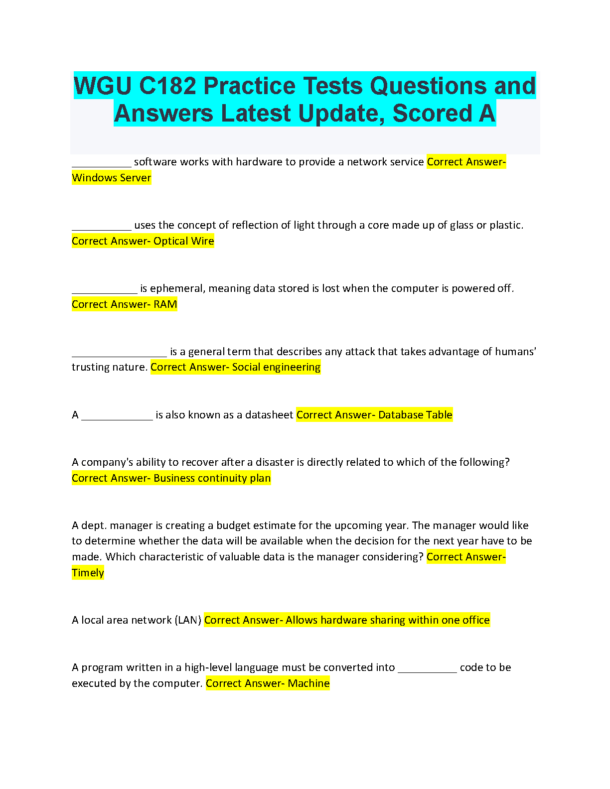 WGU C182 Practice Tests Questions and Answers Latest Update Scored A. DOWNLOAD on www.hackedexams.com INSTANTLY.