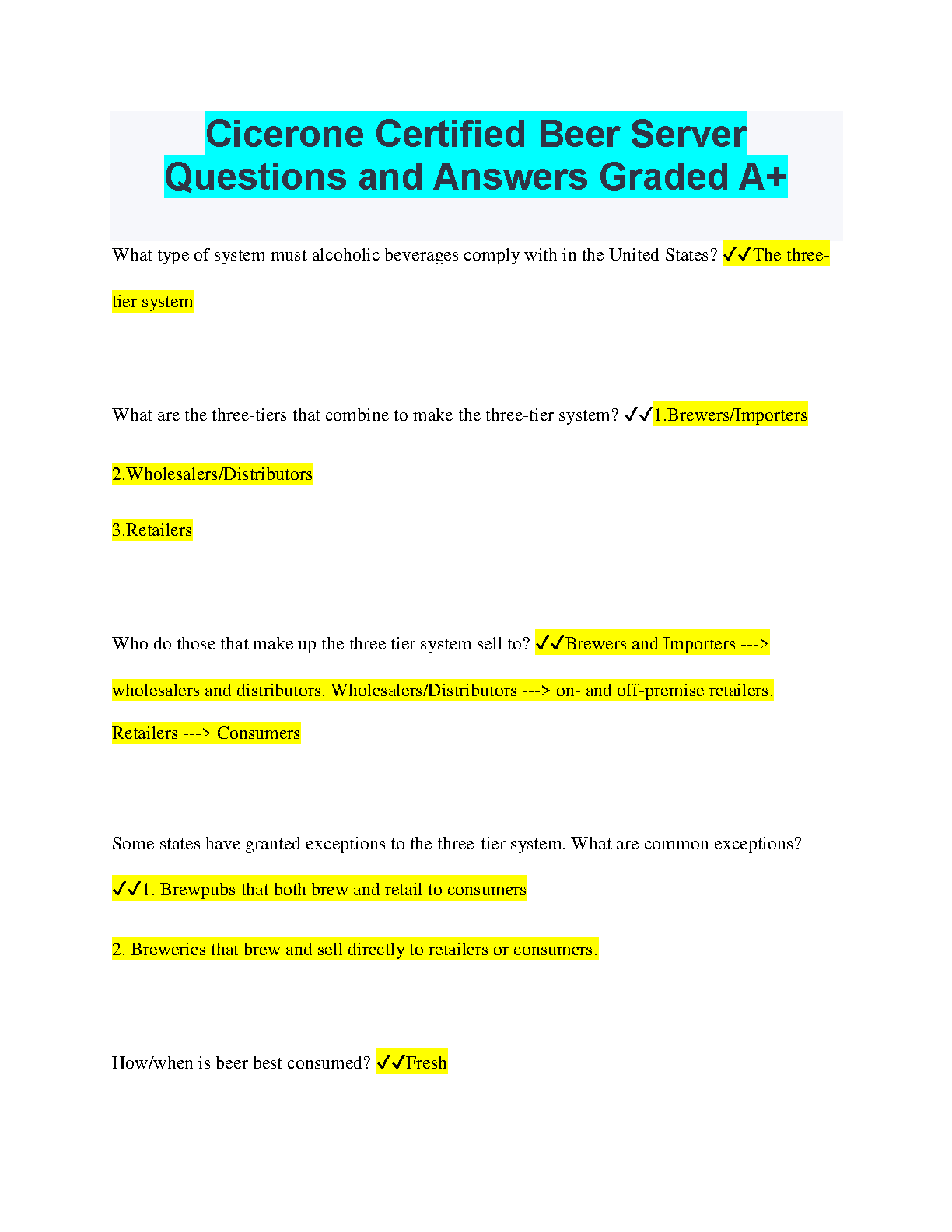 Cicerone Certified Beer Server Questions and Answers Graded A+ - Study Guide for Exam Success 2024/2025