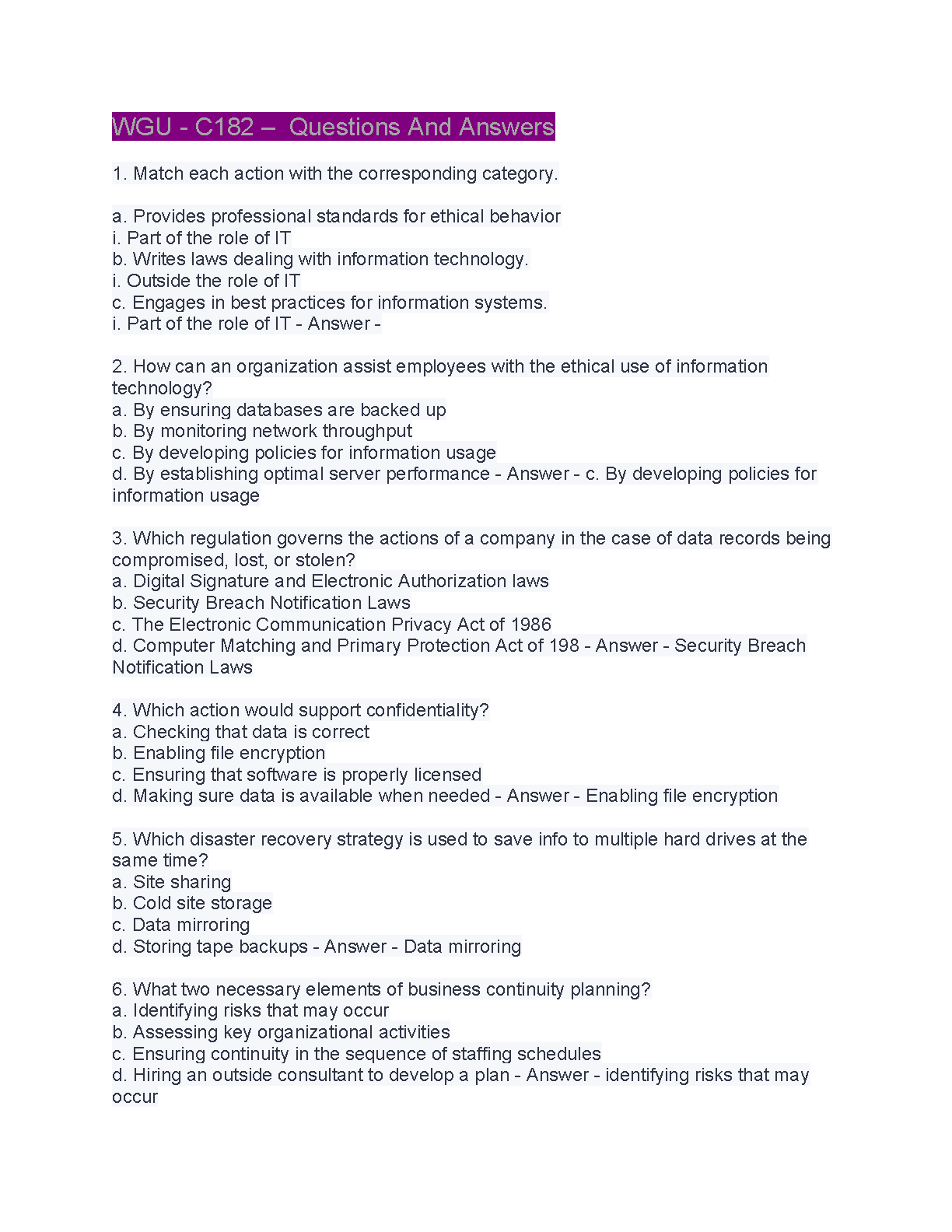 WGU - C182 – Questions And Answers UPDATED 2023. DOWNLOAD on www.hackedexams.com INSTANTLY.