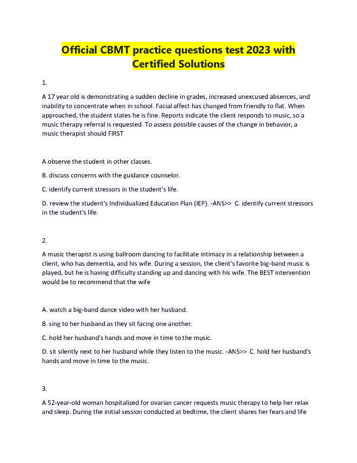 Official CBMT Practice Questions Test 2023 with Certified Solutions by Unknown Author