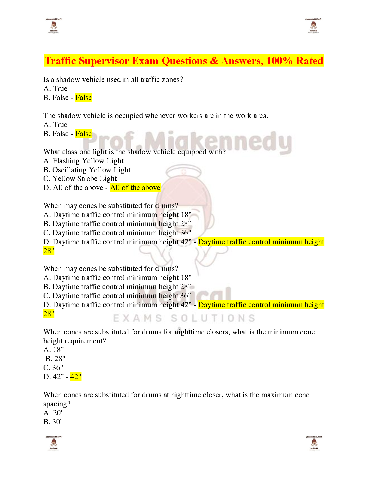 Traffic Supervisor Exam Questions & Answers, 100% Rated, 2024/2025 Edition - Pass Your Exam on the First Attempt