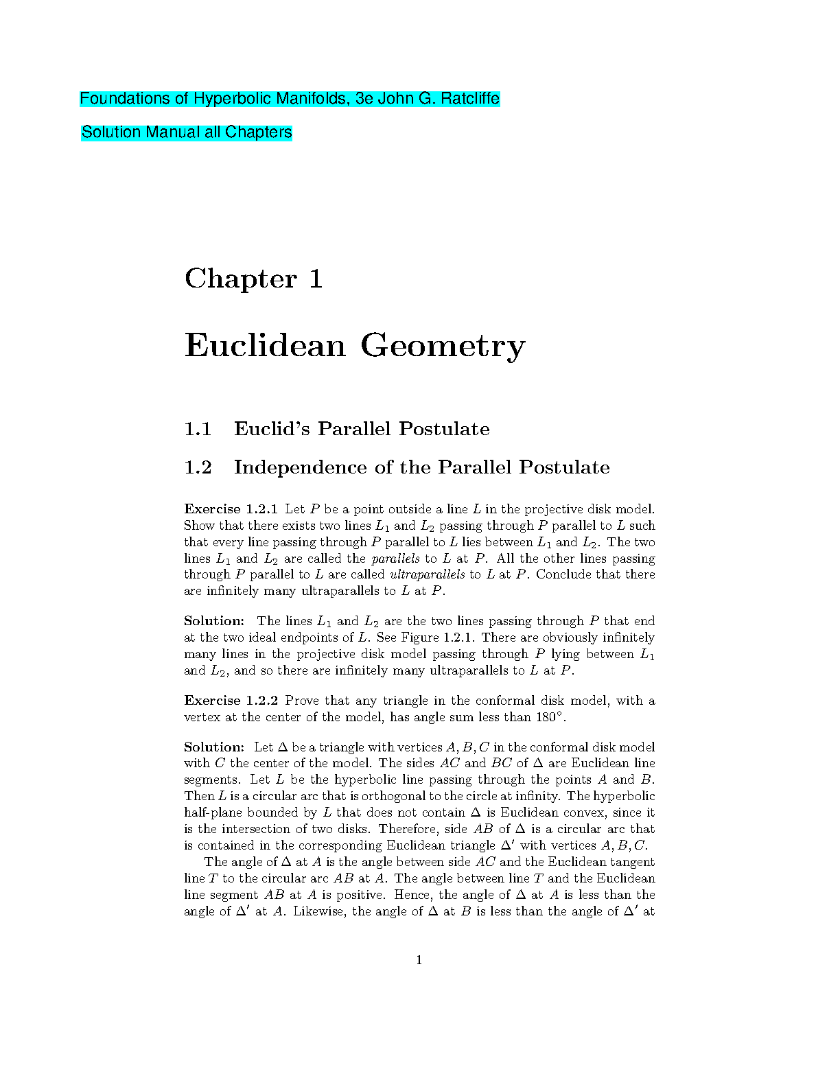 Foundations of Hyperbolic Manifolds, 3e: Solutions Manual All Chapters by John G. Ratcliffe