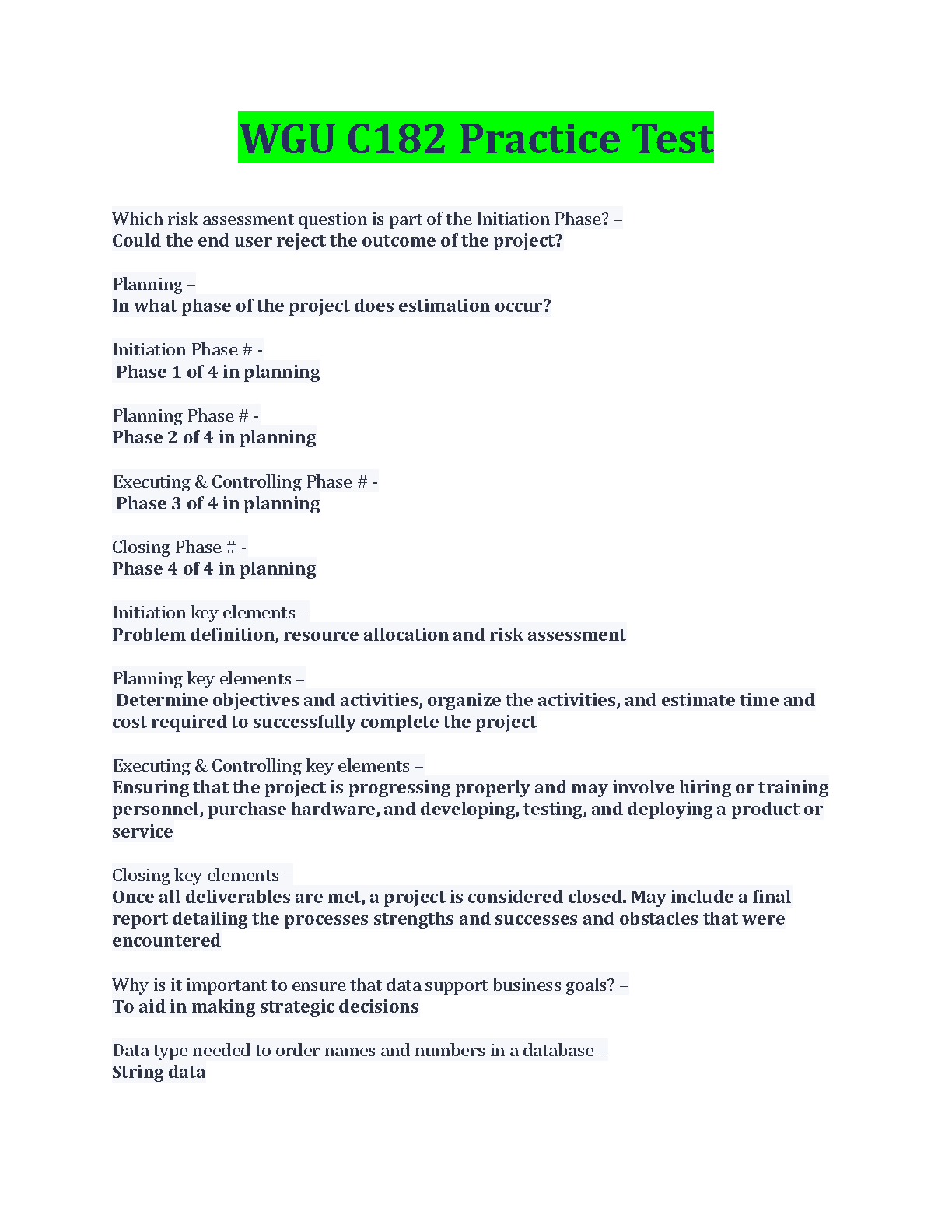 WGU C182 Practice Tests Questions and Answers Latest Update 2023/2024