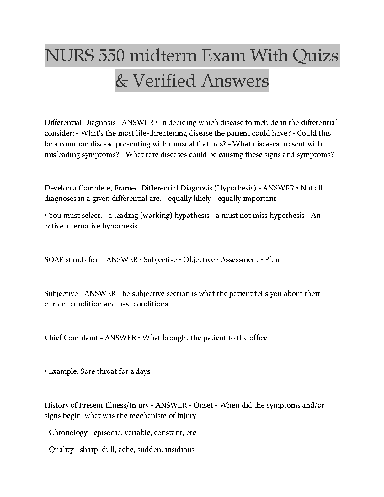 NURS 550 Midterm Exam With Quizzes & Verified Answers: Complete Study Guide for Success in 2024/2025