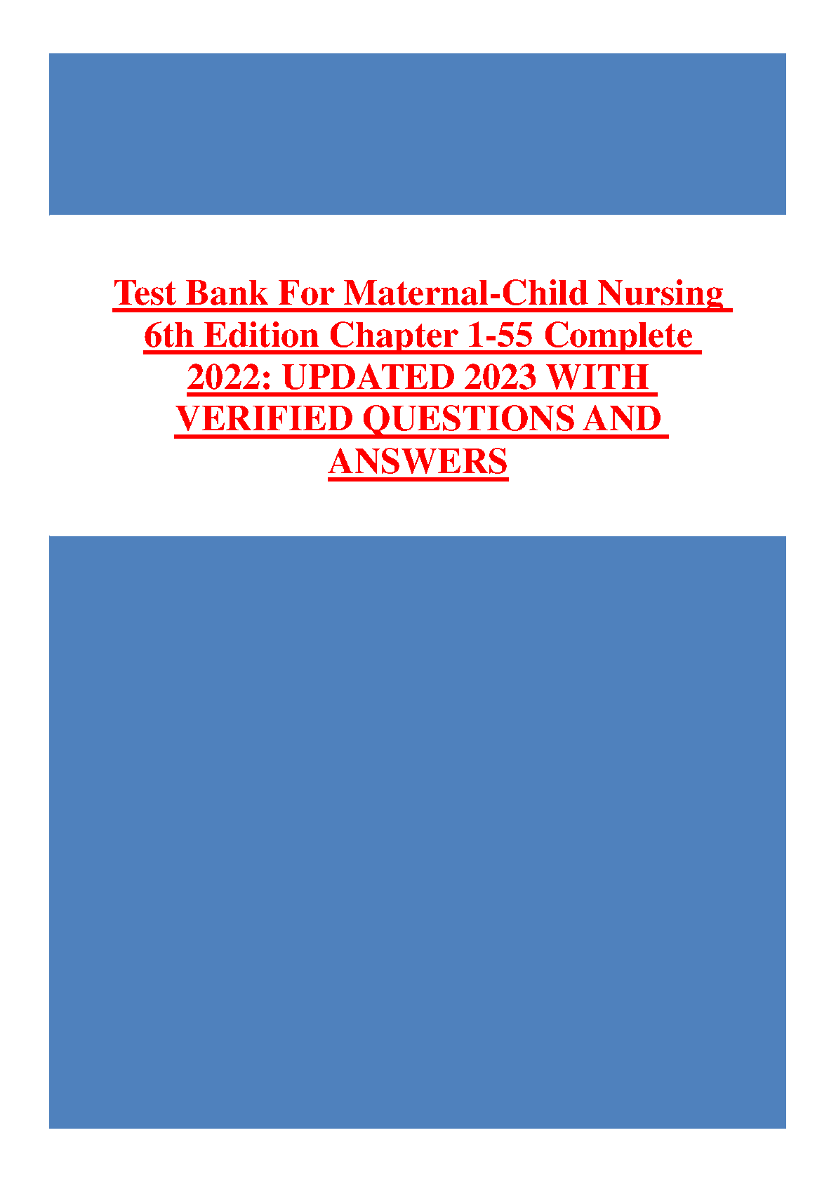 Maternal-Child Nursing 6th Edition Test Bank by Marilyn Hockenberry, David Wilson, and Wong - UPDATED 2023 with Verified Questions & Answers