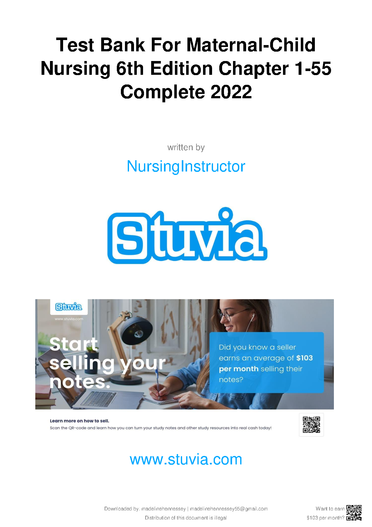 This comprehensive Test Bank for Maternal-Child Nursing, 6th Edition by Marilyn Hockenberry, David Wilson, and Wong covers all 55 chapters of the textbook. The test bank includes verified questions and answers, providing students with valuable practice for their exams. Get a head start on your studies and ace your exams with this updated and reliable resource.