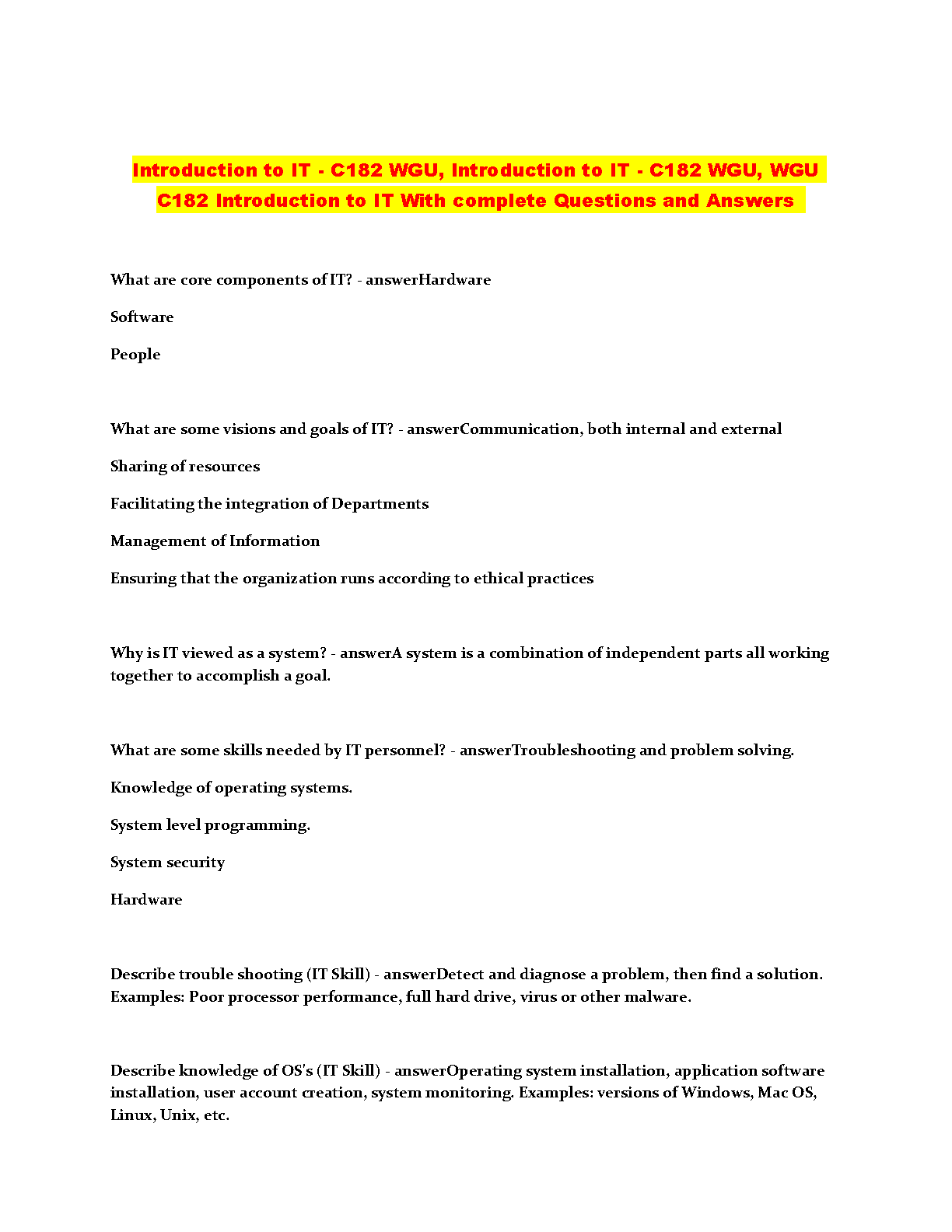 WGU C182 Introduction to IT With complete Questions and Answers 2023. DOWNLOAD on www.hackedexams.com INSTANTLY.