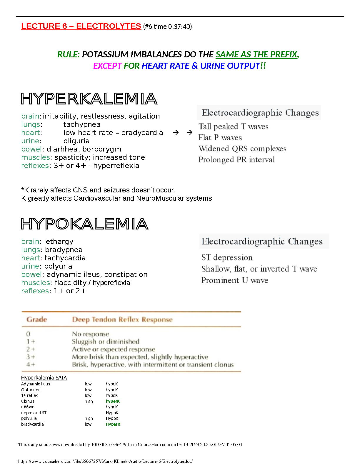 Electrolytes: Potassium Imbalances, Hyperkalemia & Hypokalemia - Lecture Notes for 2024/2025