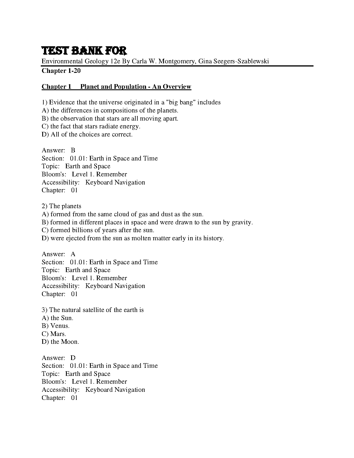 Test Bank for Environmental Geology 12e by Carla W. Montgomery, Gina Seegers-Szablewski
