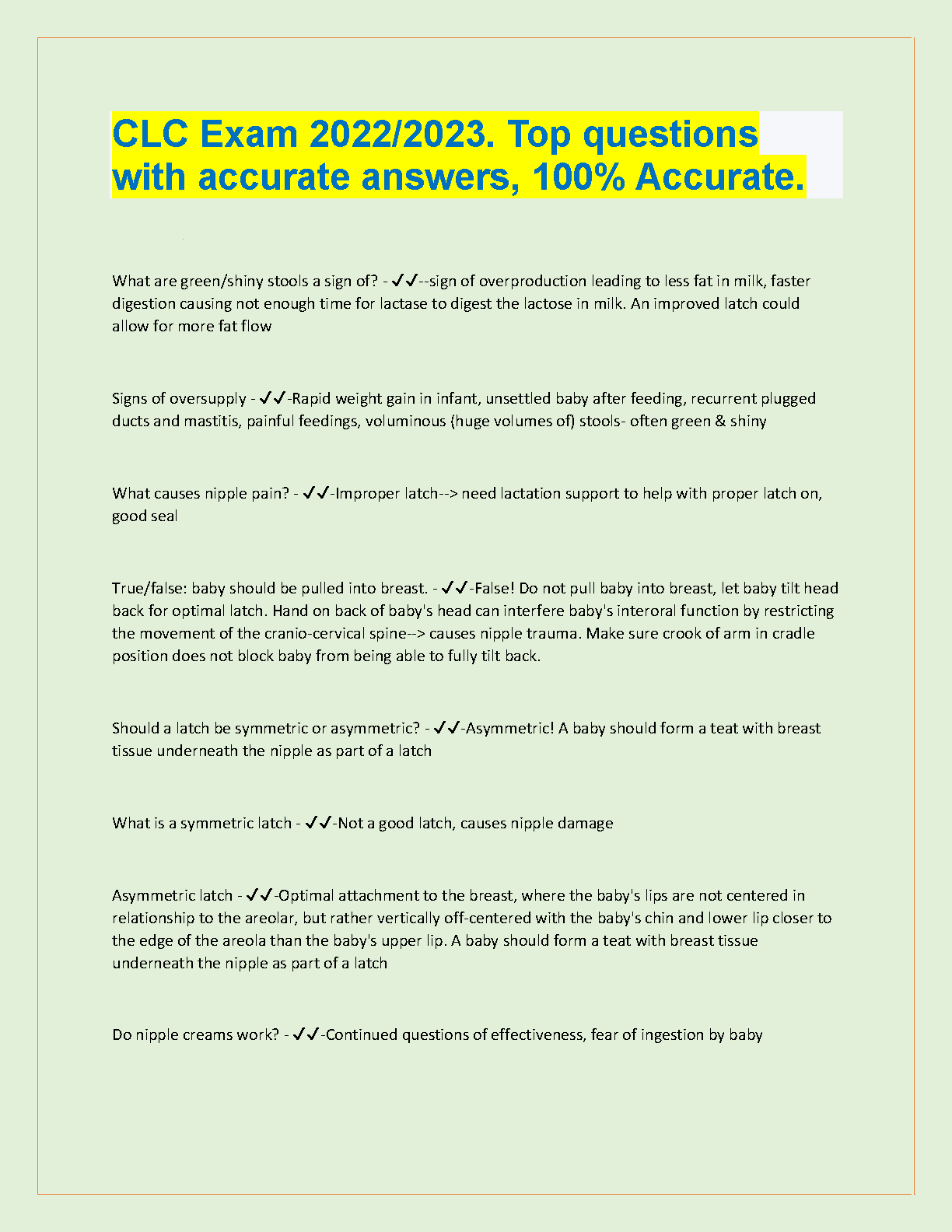 CLC Exam 2022/2023. Top questions with accurate answers, 100% Accurate.