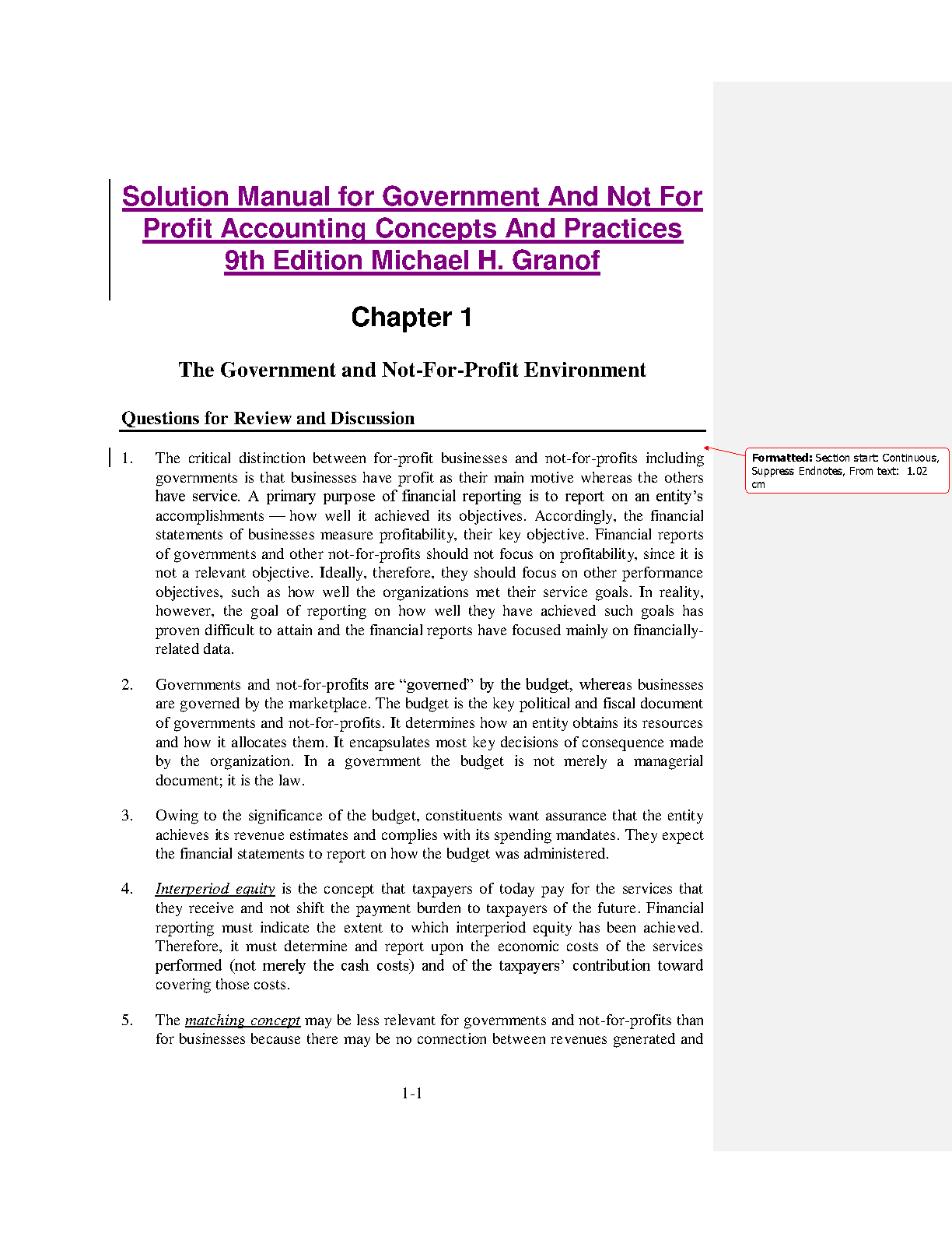 Government and Not-for-Profit Accounting Concepts and Practices: Solution Manual, 9th Edition by Michael H. Granof