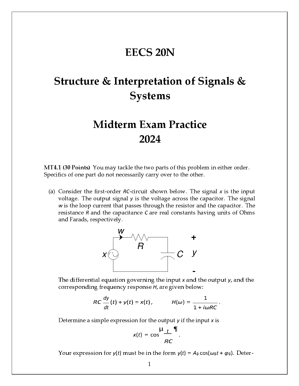 EECS 20N Structure and Interpretation of Signals and Systems Midterm Exam Practice 2024 - Ace Your Exams on the First Attempt!