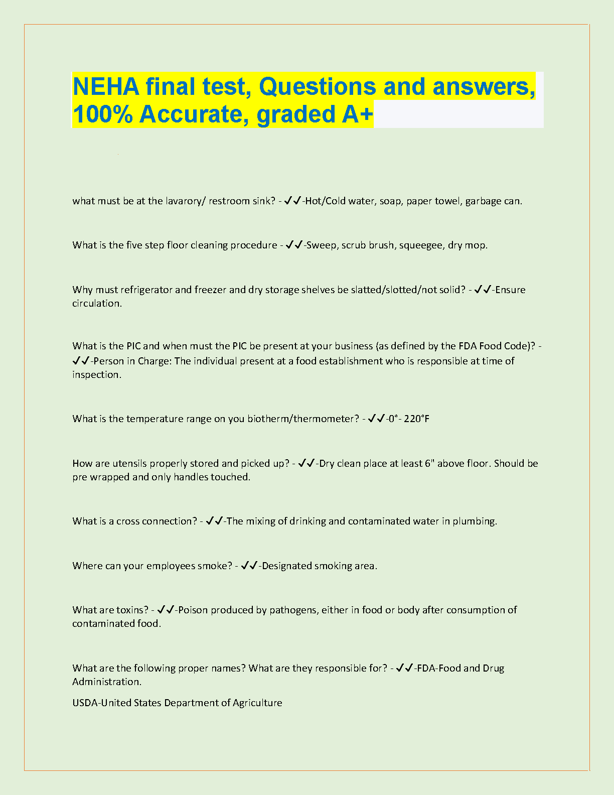 NEHA Final Exam Questions and Answers 2024/2025 Edition - Complete Study Guide for First-Time Pass