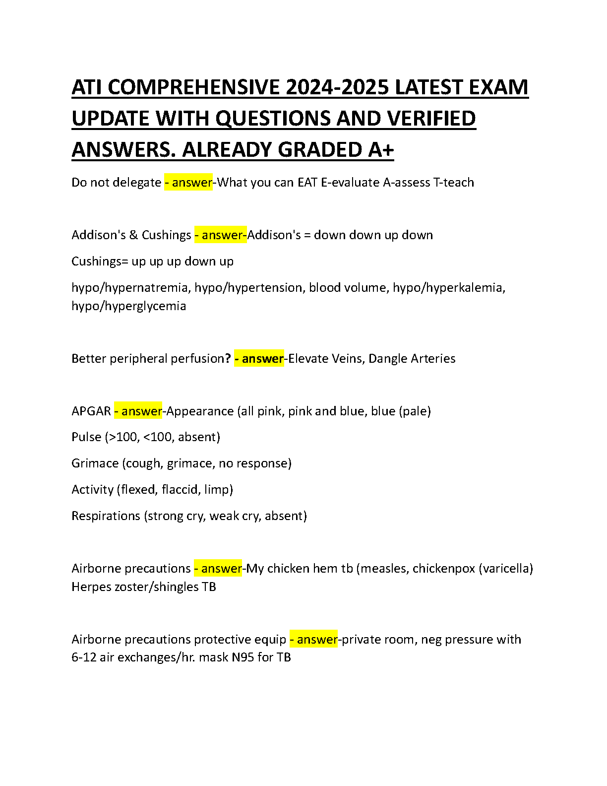ATI Comprehensive 2024-2025 Latest Exam Update with Questions and Verified Answers. Already Graded A+