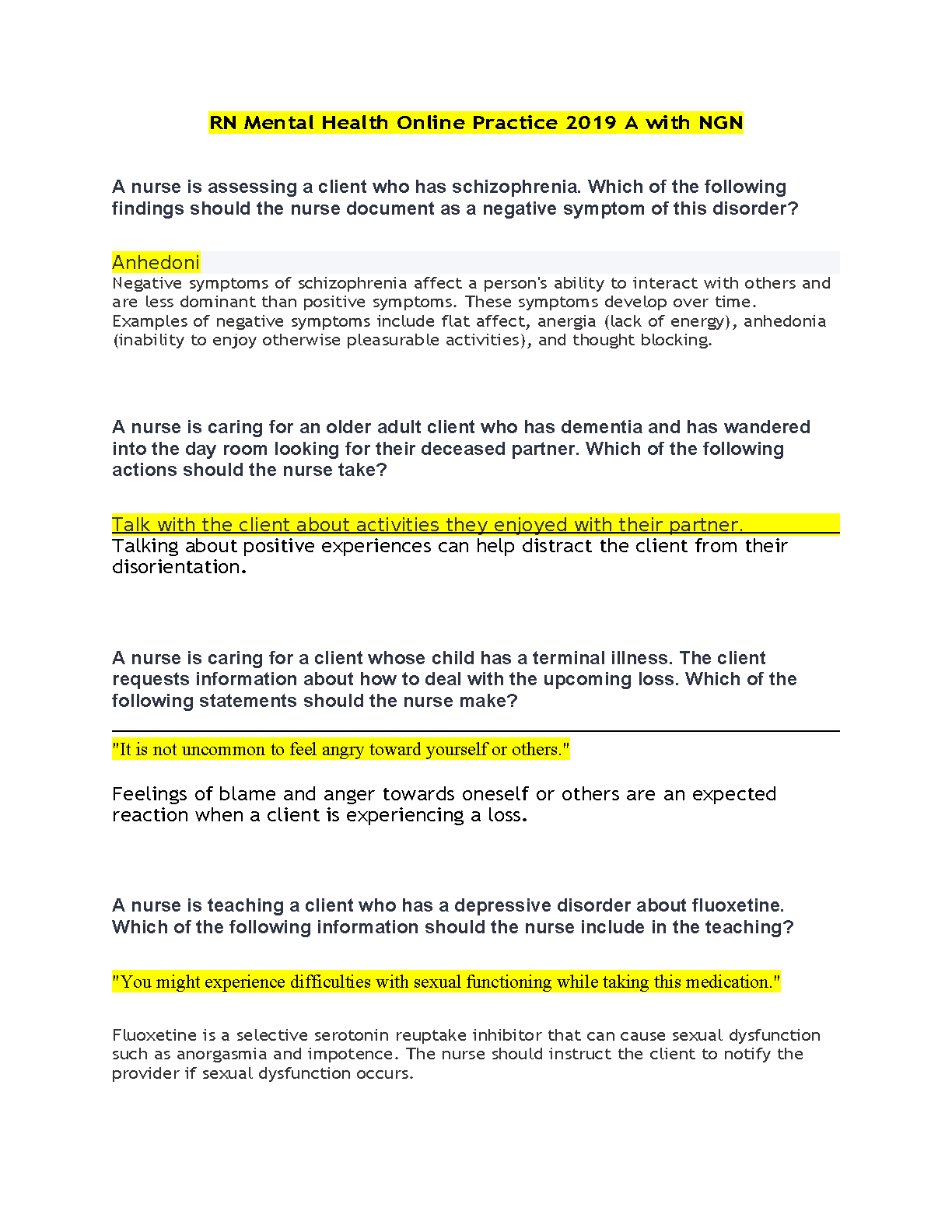 RN Mental Health Online Practice A with NGN BEST UPDATED SOLUTION 2023/2024