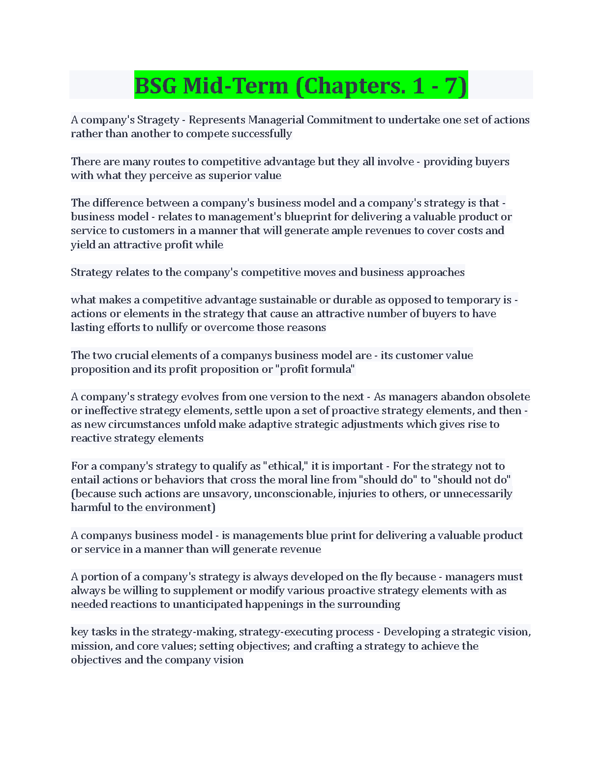 BSG Mid-Term (Chapters: 1-7) - A Strategic Management Guide to Passing Exams on Your First Attempt