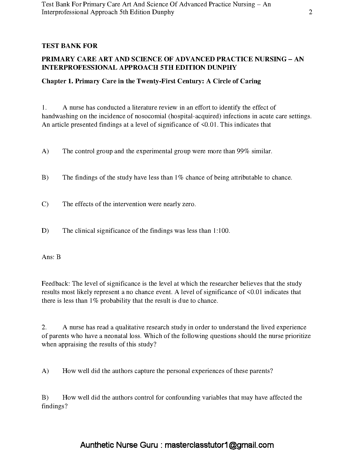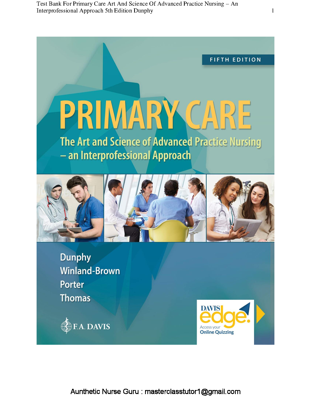 Ace your exams with this comprehensive test bank for the 5th edition of Primary Care: The Art and Science of Advanced Practice Nursing - An Interprofessional Approach. Created by expert authors, this test bank provides numerous practice questions that cover all the key concepts and theories discussed in the textbook. Use it to strengthen your understanding and build confidence for your upcoming assessments.