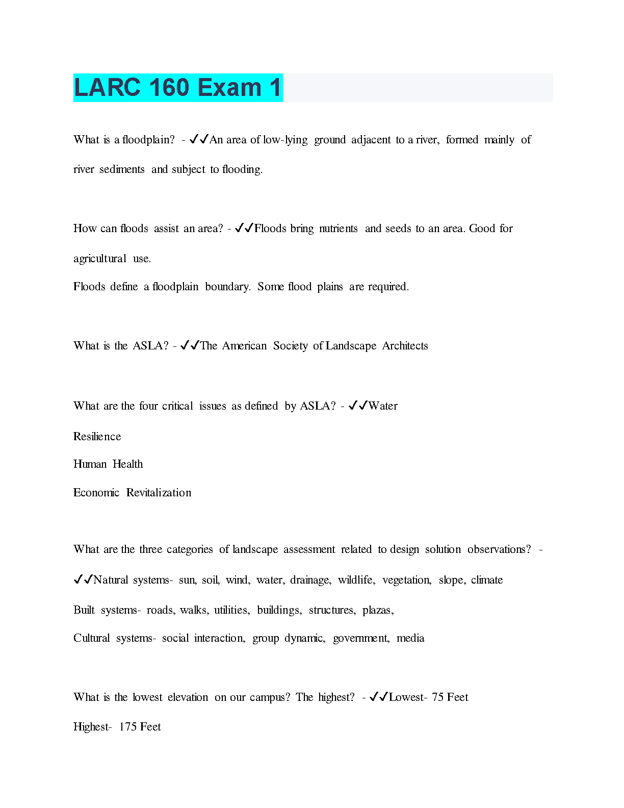 LARC 160 Exam 1: Practice Questions and Answers for Success