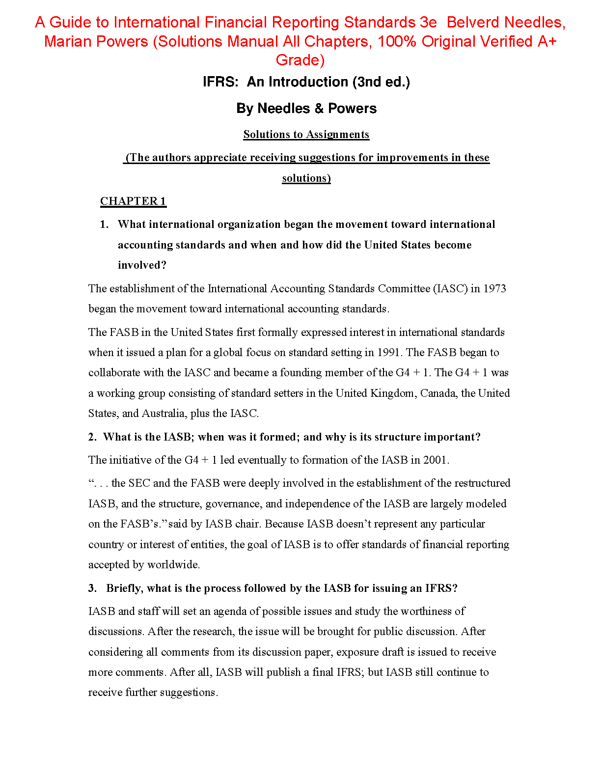 This resource offers solutions to assignments for the book "IFRS: An Introduction" by Marian Powers and Belverd Needles (3rd Edition). It provides comprehensive solutions for students struggling with assignments and looking for a shortcut to understanding IFRS.