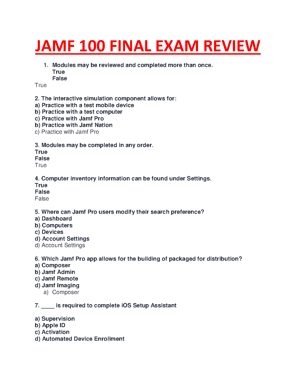Jamf 100 Final Exam Review - Latest Edition for 2024/2025 - Ace your Exam on the First Attempt - Avoid Resits