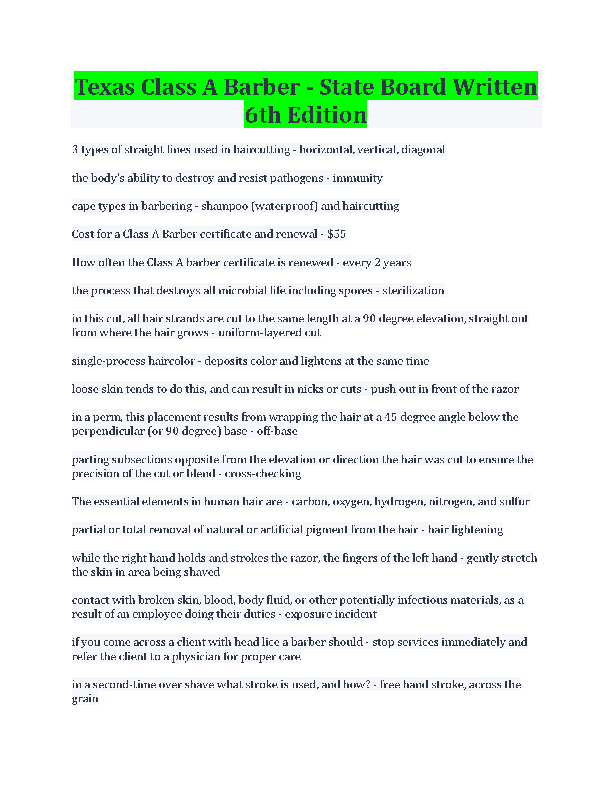 Ace your Texas Class A Barber State Board Written Exam on the first try with this comprehensive study guide! This 6th edition, written by James S. Wilson and Thomas E. Wilson, is designed to help you understand all the essential concepts covered on the exam.
