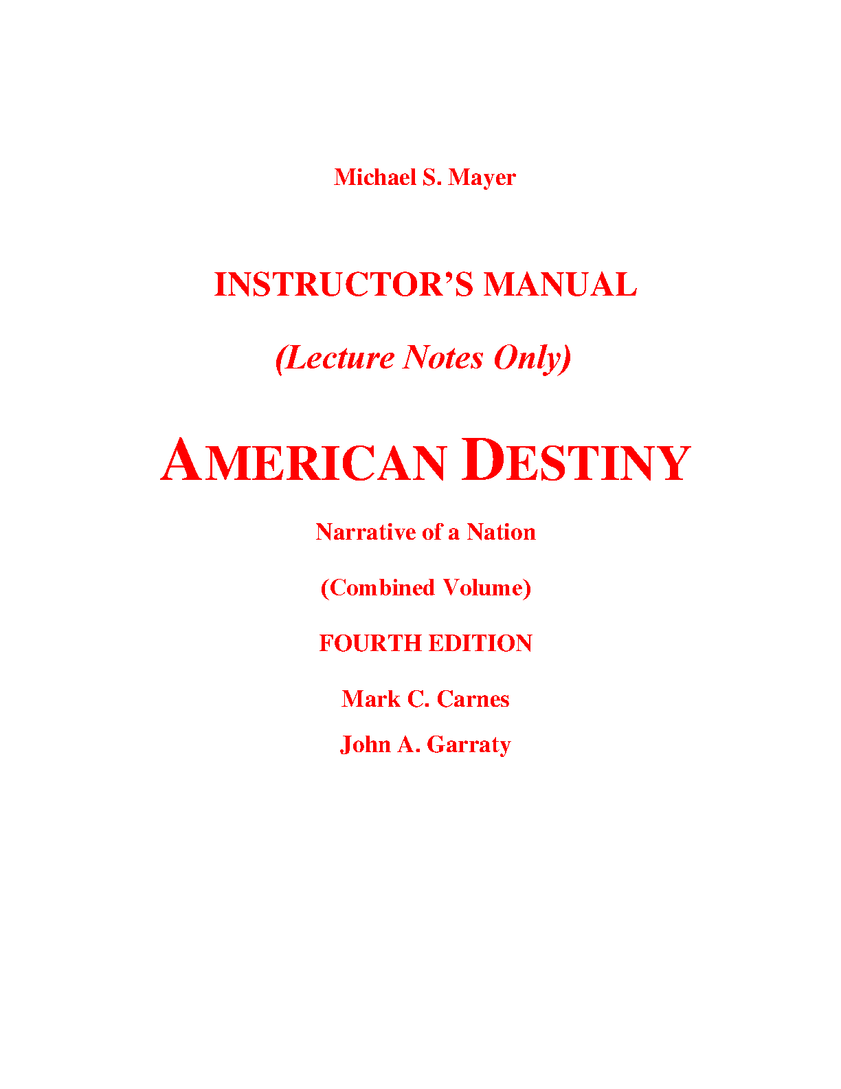American Destiny: Narrative of a Nation, Fourth Edition by Mark C. Carnes and John A. Garraty Instructor's Manual (Lecture Notes Only)