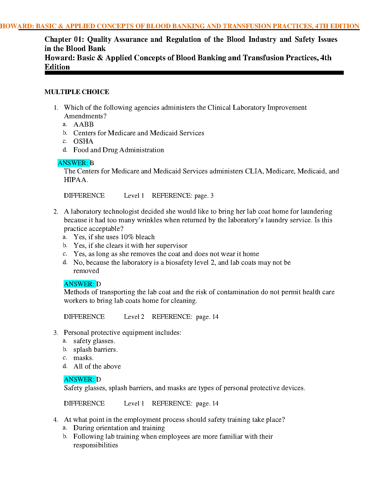 Get ready to ace your exams with Paula R. Howard's "Basic & Applied Concepts of Blood Banking and Transfusion Practices" 4th Edition! This comprehensive guide offers detailed solutions to help you conquer every chapter. Packed with 100% correct answers, prepare for your exams with confidence. This resource is specially designed for 2024/2025 academic year and ensure success on your first attempt.