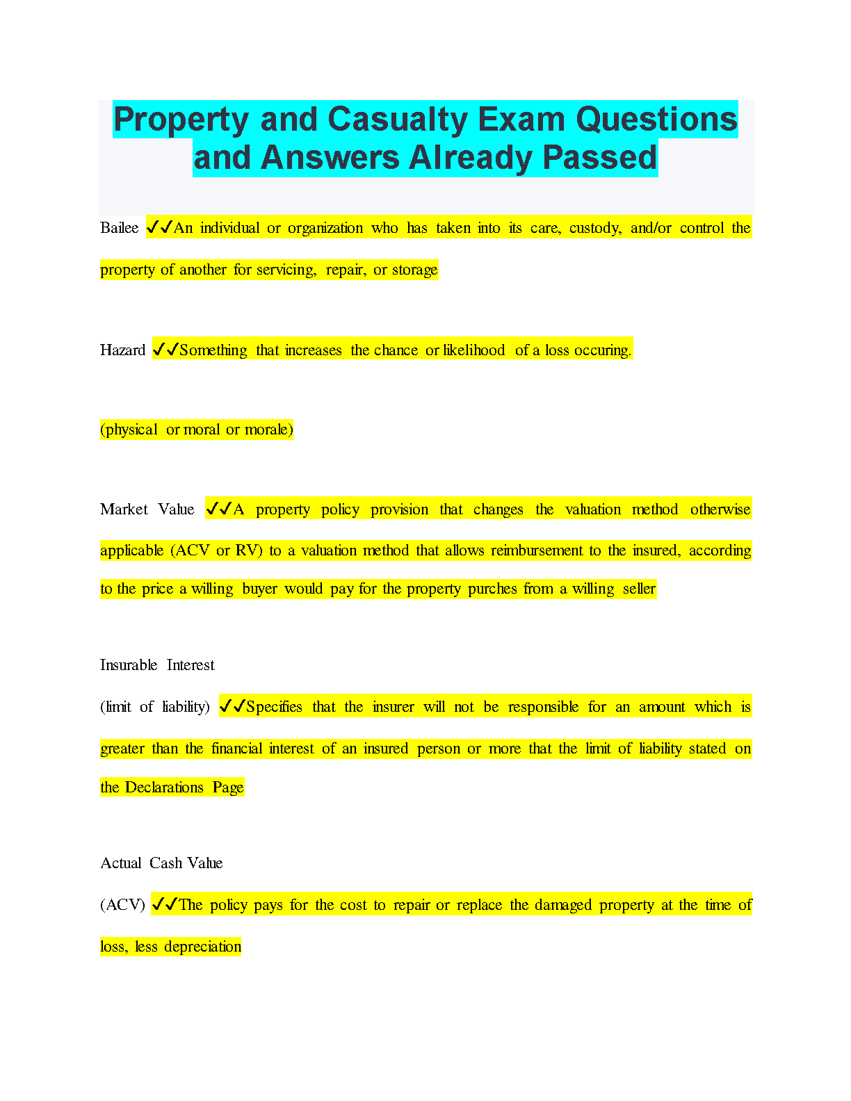 Property and Casualty Exam Questions and Answers: Ace Your Exam on the First Attempt! 2024/2025 Edition