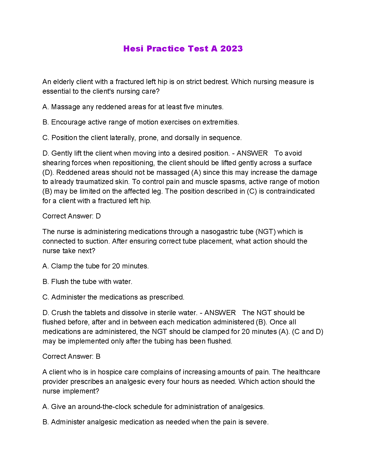 This HESI Practice Test A 2023 edition is a valuable resource for nursing students seeking to ace their exams on the first attempt. With this comprehensive practice test, you'll encounter real-world scenarios and questions designed to simulate the actual HESI exam experience. Gain confidence by identifying your strengths and weaknesses, thereby minimizing the chances of resits.
