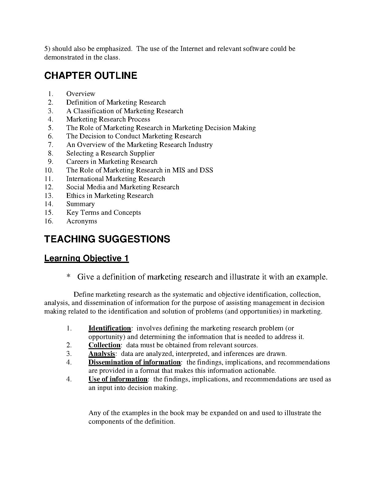 This edition of the book provides an overview of the nature and scope of marketing research. It gives a definition and classification of marketing research, and an overview of the marketing research process. The roles of MIS and DSS are discussed, and international marketing research is covered. The role of social media and ethical considerations are also topics of current relevance.
