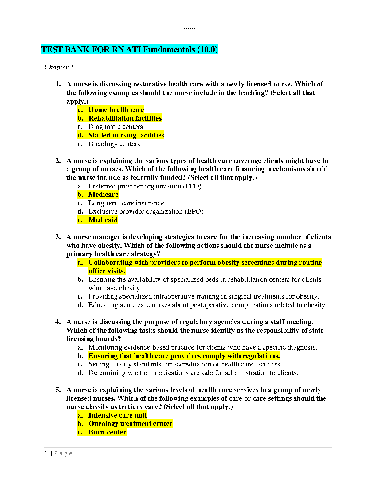 ATI Fundamentals Test Bank 10.0 Edition by Linda Anne Silvestri, Judith M. Wilkinson, and Shelly Burger